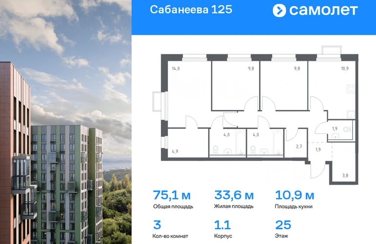 Предлагается 3-комнатная квартира комфорт-класса 75,1 кв.м в корпусе 1.1 на 25 этаже, в ЖК «Сабанеева 125» Квартира без отделки. Доступность опции «отделка» и возможность комплектации мебелью и декором уточняйте у застройщика. Приобрести квартиру возможно по специальным акциям от застройщика, с текущими условиями акций можно ознакомиться в блоке «Акций». Цена динамическая и может отличаться, уточняйте актуальность у застройщика. В жилом комплексе «Сабанеева 125» вы ежедневно будете наслаждаться видами сопок. Холмистый рельеф защищает территорию от ветра. Комплекс расположен в Первореченском районе Владивостока, всего в 20 минутах на машине до центра города. На первых этажах откроются супермаркеты, кафе и пекарни. Для малышей — детский сад в 2 минутах пешком и школа в 10 минутах. За 6 минут можно доехать до Нагорного парка, а за 15 минут — до набережной Цесаревича с панорамой Золотого моста. Комплекс состоит из 3 монолитных домов высотой 25 этажей с фасадами, дизайн которых вдохновлен птицами Дальнего Востока. Дворы оформлены как сад с дальневосточной флорой, есть смотровые площадки, скалодром, перголы и игровые зоны для детей. Подземный паркинг — трехуровневый. В сквозные подъезды без ступеней и с помещением для колясок удобно заходить. В жилом комплексе «Сабанеева 125» есть квартиры с индивидуальными зелеными террасами, увеличенными окнами и панорамными балконами для чаепитий с видом на сопки и залив.#yan19-2r1609813#О застройщике