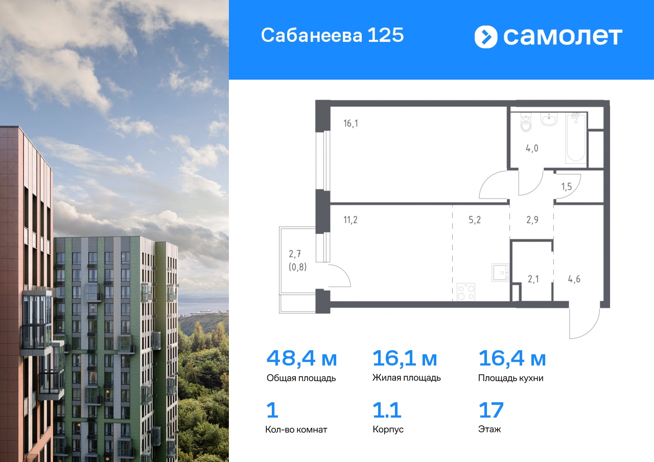 Строим кварталы для жизни с заботой о будущем. Предлагается 1-комнатная квартира комфорт-класса 48,4 кв.м в корпусе 1.1 на 17 этаже, в ЖК «Сабанеева 125» Квартира без отделки. Доступность опции «отделка» и возможность комплектации мебелью и декором уточняйте у застройщика. Приобрести квартиру возможно по специальным акциям от застройщика, с текущими условиями акций можно ознакомиться в блоке «Акций». Цена динамическая и может отличаться, уточняйте актуальность у застройщика. В жилом комплексе «Сабанеева 125» вы ежедневно будете наслаждаться видами сопок. Холмистый рельеф защищает территорию от ветра. Комплекс расположен в Первореченском районе Владивостока, всего в 20 минутах на машине до центра города. На первых этажах откроются супермаркеты, кафе и пекарни. Для малышей — детский сад в 2 минутах пешком и школа в 10 минутах. За 6 минут можно доехать до Нагорного парка, а за 15 минут — до набережной Цесаревича с панорамой Золотого моста. Комплекс состоит из 3 монолитных домов высотой 25 этажей с фасадами, дизайн которых вдохновлен птицами Дальнего Востока. Дворы оформлены как сад с дальневосточной флорой, есть смотровые площадки, скалодром, перголы и игровые зоны для детей. Подземный паркинг — трехуровневый. В сквозные подъезды без ступеней и с помещением для колясок удобно заходить. В жилом комплексе «Сабанеева 125» есть квартиры с индивидуальными зелеными террасами, увеличенными окнами и панорамными балконами для чаепитий с видом на сопки и залив.#yan19-2r1620704#О застройщике