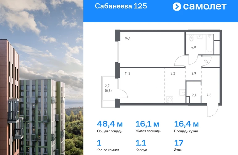 Строим кварталы для жизни с заботой о будущем. Предлагается 1-комнатная квартира комфорт-класса 48,4 кв.м в корпусе 1.1 на 17 этаже, в ЖК «Сабанеева 125» Квартира без отделки. Доступность опции «отделка» и возможность комплектации мебелью и декором уточняйте у застройщика. Приобрести квартиру возможно по специальным акциям от застройщика, с текущими условиями акций можно ознакомиться в блоке «Акций». Цена динамическая и может отличаться, уточняйте актуальность у застройщика. В жилом комплексе «Сабанеева 125» вы ежедневно будете наслаждаться видами сопок. Холмистый рельеф защищает территорию от ветра. Комплекс расположен в Первореченском районе Владивостока, всего в 20 минутах на машине до центра города. На первых этажах откроются супермаркеты, кафе и пекарни. Для малышей — детский сад в 2 минутах пешком и школа в 10 минутах. За 6 минут можно доехать до Нагорного парка, а за 15 минут — до набережной Цесаревича с панорамой Золотого моста. Комплекс состоит из 3 монолитных домов высотой 25 этажей с фасадами, дизайн которых вдохновлен птицами Дальнего Востока. Дворы оформлены как сад с дальневосточной флорой, есть смотровые площадки, скалодром, перголы и игровые зоны для детей. Подземный паркинг — трехуровневый. В сквозные подъезды без ступеней и с помещением для колясок удобно заходить. В жилом комплексе «Сабанеева 125» есть квартиры с индивидуальными зелеными террасами, увеличенными окнами и панорамными балконами для чаепитий с видом на сопки и залив.#yan19-2r1620704#О застройщике