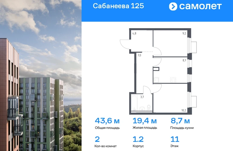 Предлагается 2-комнатная квартира комфорт-класса 43,6 кв.м в корпусе 1.2 на 11 этаже, в ЖК «Сабанеева 125» Квартира без отделки. Доступность опции «отделка» и возможность комплектации мебелью и декором уточняйте у застройщика. Приобрести квартиру возможно по специальным акциям от застройщика, с текущими условиями акций можно ознакомиться в блоке «Акций». Цена динамическая и может отличаться, уточняйте актуальность у застройщика. В жилом комплексе «Сабанеева 125» вы ежедневно будете наслаждаться видами сопок. Холмистый рельеф защищает территорию от ветра. Комплекс расположен в Первореченском районе Владивостока, всего в 20 минутах на машине до центра города. На первых этажах откроются супермаркеты, кафе и пекарни. Для малышей — детский сад в 2 минутах пешком и школа в 10 минутах. За 6 минут можно доехать до Нагорного парка, а за 15 минут — до набережной Цесаревича с панорамой Золотого моста. Комплекс состоит из 3 монолитных домов высотой 25 этажей с фасадами, дизайн которых вдохновлен птицами Дальнего Востока. Дворы оформлены как сад с дальневосточной флорой, есть смотровые площадки, скалодром, перголы и игровые зоны для детей. Подземный паркинг — трехуровневый. В сквозные подъезды без ступеней и с помещением для колясок удобно заходить. В жилом комплексе «Сабанеева 125» есть квартиры с индивидуальными зелеными террасами, увеличенными окнами и панорамными балконами для чаепитий с видом на сопки и залив.#yan19-2r1620707#О застройщике
