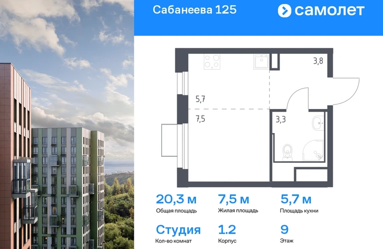 Строим кварталы для жизни с заботой о будущем. Предлагается квартира студия комфорт-класса 20,3 кв.м в корпусе 1.2 на 9 этаже, в ЖК «Сабанеева 125» Квартира без отделки. Доступность опции «отделка» и возможность комплектации мебелью и декором уточняйте у застройщика. Приобрести квартиру возможно по специальным акциям от застройщика, с текущими условиями акций можно ознакомиться в блоке «Акций». Цена динамическая и может отличаться, уточняйте актуальность у застройщика. В жилом комплексе «Сабанеева 125» вы ежедневно будете наслаждаться видами сопок. Холмистый рельеф защищает территорию от ветра. Комплекс расположен в Первореченском районе Владивостока, всего в 20 минутах на машине до центра города. На первых этажах откроются супермаркеты, кафе и пекарни. Для малышей — детский сад в 2 минутах пешком и школа в 10 минутах. За 6 минут можно доехать до Нагорного парка, а за 15 минут — до набережной Цесаревича с панорамой Золотого моста. Комплекс состоит из 3 монолитных домов высотой 25 этажей с фасадами, дизайн которых вдохновлен птицами Дальнего Востока. Дворы оформлены как сад с дальневосточной флорой, есть смотровые площадки, скалодром, перголы и игровые зоны для детей. Подземный паркинг — трехуровневый. В сквозные подъезды без ступеней и с помещением для колясок удобно заходить. В жилом комплексе «Сабанеева 125» есть квартиры с индивидуальными зелеными террасами, увеличенными окнами и панорамными балконами для чаепитий с видом на сопки и залив.#yan19-2r1635885#О застройщике