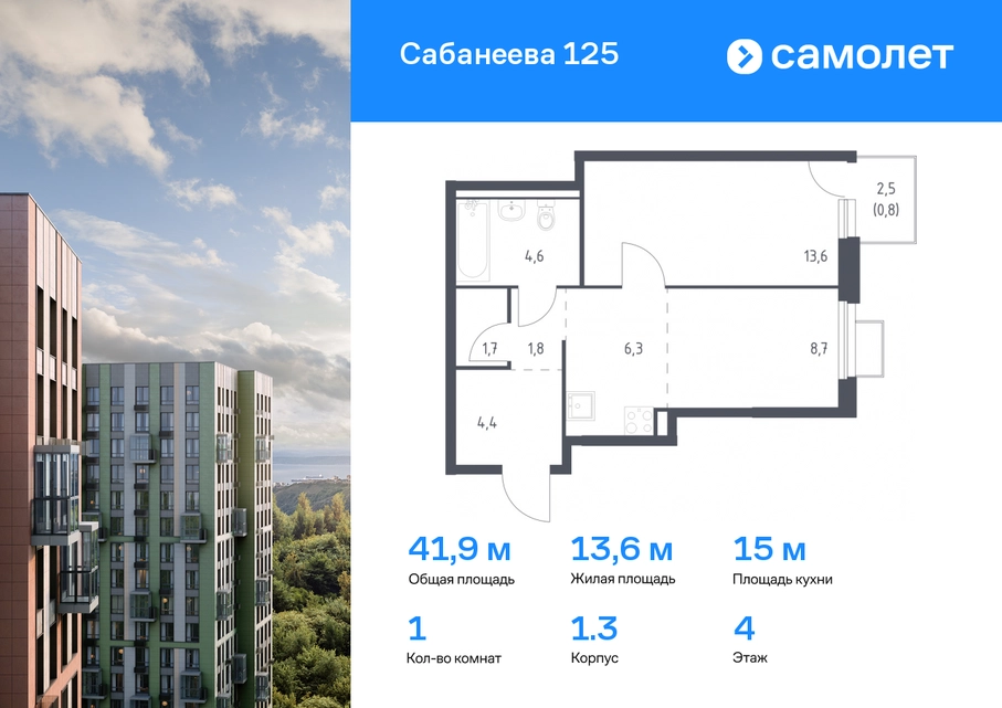 Предлагается 1-комнатная квартира комфорт-класса 41,9 кв.м в корпусе 1.3 на 4 этаже, в ЖК «Сабанеева 125» Квартира без отделки. Доступность опции «отделка» и возможность комплектации мебелью и декором уточняйте у застройщика. Приобрести квартиру возможно по специальным акциям от застройщика, с текущими условиями акций можно ознакомиться в блоке «Акций». Цена динамическая и может отличаться, уточняйте актуальность у застройщика. В жилом комплексе «Сабанеева 125» вы ежедневно будете наслаждаться видами сопок. Холмистый рельеф защищает территорию от ветра. Комплекс расположен в Первореченском районе Владивостока, всего в 20 минутах на машине до центра города. На первых этажах откроются супермаркеты, кафе и пекарни. Для малышей — детский сад в 2 минутах пешком и школа в 10 минутах. За 6 минут можно доехать до Нагорного парка, а за 15 минут — до набережной Цесаревича с панорамой Золотого моста. Комплекс состоит из 3 монолитных домов высотой 25 этажей с фасадами, дизайн которых вдохновлен птицами Дальнего Востока. Дворы оформлены как сад с дальневосточной флорой, есть смотровые площадки, скалодром, перголы и игровые зоны для детей. Подземный паркинг — трехуровневый. В сквозные подъезды без ступеней и с помещением для колясок удобно заходить. В жилом комплексе «Сабанеева 125» есть квартиры с индивидуальными зелеными террасами, увеличенными окнами и панорамными балконами для чаепитий с видом на сопки и залив.#yan19-2r1665810#О застройщике