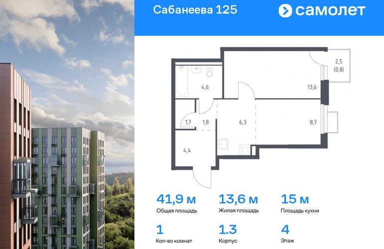 Предлагается 1-комнатная квартира комфорт-класса 41,9 кв.м в корпусе 1.3 на 4 этаже, в ЖК «Сабанеева 125» Квартира без отделки. Доступность опции «отделка» и возможность комплектации мебелью и декором уточняйте у застройщика. Приобрести квартиру возможно по специальным акциям от застройщика, с текущими условиями акций можно ознакомиться в блоке «Акций». Цена динамическая и может отличаться, уточняйте актуальность у застройщика. В жилом комплексе «Сабанеева 125» вы ежедневно будете наслаждаться видами сопок. Холмистый рельеф защищает территорию от ветра. Комплекс расположен в Первореченском районе Владивостока, всего в 20 минутах на машине до центра города. На первых этажах откроются супермаркеты, кафе и пекарни. Для малышей — детский сад в 2 минутах пешком и школа в 10 минутах. За 6 минут можно доехать до Нагорного парка, а за 15 минут — до набережной Цесаревича с панорамой Золотого моста. Комплекс состоит из 3 монолитных домов высотой 25 этажей с фасадами, дизайн которых вдохновлен птицами Дальнего Востока. Дворы оформлены как сад с дальневосточной флорой, есть смотровые площадки, скалодром, перголы и игровые зоны для детей. Подземный паркинг — трехуровневый. В сквозные подъезды без ступеней и с помещением для колясок удобно заходить. В жилом комплексе «Сабанеева 125» есть квартиры с индивидуальными зелеными террасами, увеличенными окнами и панорамными балконами для чаепитий с видом на сопки и залив.#yan19-2r1665810#О застройщике