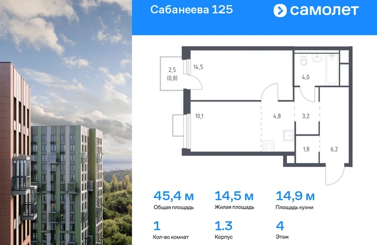 Строим кварталы для жизни с заботой о будущем. Предлагается 1-комнатная квартира комфорт-класса 45,4 кв.м в корпусе 1.3 на 4 этаже, в ЖК «Сабанеева 125» Квартира без отделки. Доступность опции «отделка» и возможность комплектации мебелью и декором уточняйте у застройщика. Приобрести квартиру возможно по специальным акциям от застройщика, с текущими условиями акций можно ознакомиться в блоке «Акций». Цена динамическая и может отличаться, уточняйте актуальность у застройщика. В жилом комплексе «Сабанеева 125» вы ежедневно будете наслаждаться видами сопок. Холмистый рельеф защищает территорию от ветра. Комплекс расположен в Первореченском районе Владивостока, всего в 20 минутах на машине до центра города. На первых этажах откроются супермаркеты, кафе и пекарни. Для малышей — детский сад в 2 минутах пешком и школа в 10 минутах. За 6 минут можно доехать до Нагорного парка, а за 15 минут — до набережной Цесаревича с панорамой Золотого моста. Комплекс состоит из 3 монолитных домов высотой 25 этажей с фасадами, дизайн которых вдохновлен птицами Дальнего Востока. Дворы оформлены как сад с дальневосточной флорой, есть смотровые площадки, скалодром, перголы и игровые зоны для детей. Подземный паркинг — трехуровневый. В сквозные подъезды без ступеней и с помещением для колясок удобно заходить. В жилом комплексе «Сабанеева 125» есть квартиры с индивидуальными зелеными террасами, увеличенными окнами и панорамными балконами для чаепитий с видом на сопки и залив.#yan19-2r1665811#О застройщике