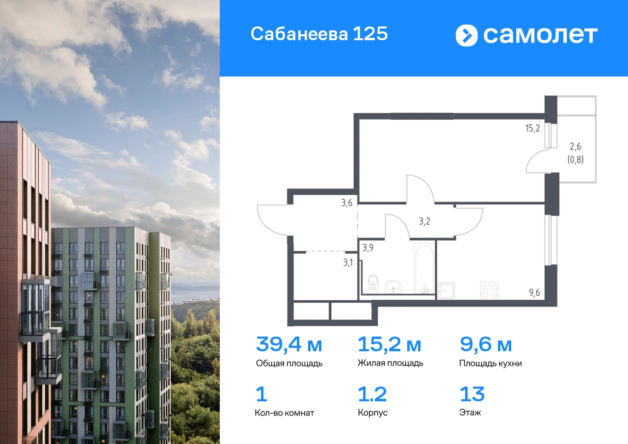 Предлагается 1-комнатная квартира комфорт-класса 39,4 кв.м в корпусе 1.2 на 13 этаже, в ЖК «Сабанеева 125» Квартира без отделки. Доступность опции «отделка» и возможность комплектации мебелью и декором уточняйте у застройщика. Приобрести квартиру возможно по специальным акциям от застройщика, с текущими условиями акций можно ознакомиться в блоке «Акций». Цена динамическая и может отличаться, уточняйте актуальность у застройщика. В жилом комплексе «Сабанеева 125» вы ежедневно будете наслаждаться видами сопок. Холмистый рельеф защищает территорию от ветра. Комплекс расположен в Первореченском районе Владивостока, всего в 20 минутах на машине до центра города. На первых этажах откроются супермаркеты, кафе и пекарни. Для малышей — детский сад в 2 минутах пешком и школа в 10 минутах. За 6 минут можно доехать до Нагорного парка, а за 15 минут — до набережной Цесаревича с панорамой Золотого моста. Комплекс состоит из 3 монолитных домов высотой 25 этажей с фасадами, дизайн которых вдохновлен птицами Дальнего Востока. Дворы оформлены как сад с дальневосточной флорой, есть смотровые площадки, скалодром, перголы и игровые зоны для детей. Подземный паркинг — трехуровневый. В сквозные подъезды без ступеней и с помещением для колясок удобно заходить. В жилом комплексе «Сабанеева 125» есть квартиры с индивидуальными зелеными террасами, увеличенными окнами и панорамными балконами для чаепитий с видом на сопки и залив.#yan19-2r1666024#О застройщике