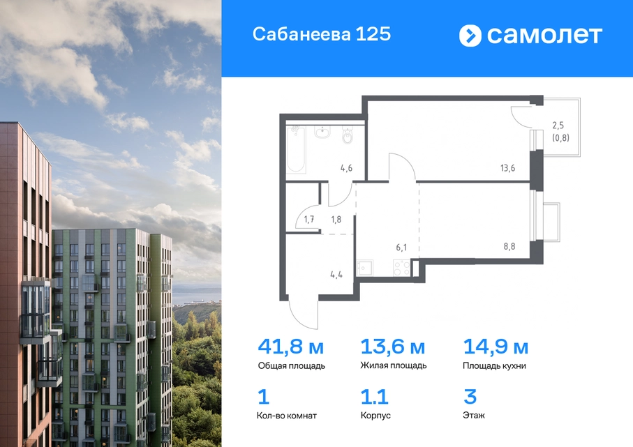Строим кварталы для жизни с заботой о будущем. Предлагается 1-комнатная квартира комфорт-класса 41,8 кв.м в корпусе 1.1 на 3 этаже, в ЖК «Сабанеева 125» Квартира без отделки. Доступность опции «отделка» и возможность комплектации мебелью и декором уточняйте у застройщика. Приобрести квартиру возможно по специальным акциям от застройщика, с текущими условиями акций можно ознакомиться в блоке «Акций». Цена динамическая и может отличаться, уточняйте актуальность у застройщика. В жилом комплексе «Сабанеева 125» вы ежедневно будете наслаждаться видами сопок. Холмистый рельеф защищает территорию от ветра. Комплекс расположен в Первореченском районе Владивостока, всего в 20 минутах на машине до центра города. На первых этажах откроются супермаркеты, кафе и пекарни. Для малышей — детский сад в 2 минутах пешком и школа в 10 минутах. За 6 минут можно доехать до Нагорного парка, а за 15 минут — до набережной Цесаревича с панорамой Золотого моста. Комплекс состоит из 3 монолитных домов высотой 25 этажей с фасадами, дизайн которых вдохновлен птицами Дальнего Востока. Дворы оформлены как сад с дальневосточной флорой, есть смотровые площадки, скалодром, перголы и игровые зоны для детей. Подземный паркинг — трехуровневый. В сквозные подъезды без ступеней и с помещением для колясок удобно заходить. В жилом комплексе «Сабанеева 125» есть квартиры с индивидуальными зелеными террасами, увеличенными окнами и панорамными балконами для чаепитий с видом на сопки и залив.#yan19-2r1666388#О застройщике