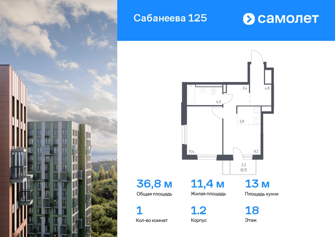 Строим кварталы для жизни с заботой о будущем. Предлагается 1-комнатная квартира комфорт-класса 36,8 кв.м в корпусе 1.2 на 18 этаже, в ЖК «Сабанеева 125» Квартира без отделки. Доступность опции «отделка» и возможность комплектации мебелью и декором уточняйте у застройщика. Приобрести квартиру возможно по специальным акциям от застройщика, с текущими условиями акций можно ознакомиться в блоке «Акций». Цена динамическая и может отличаться, уточняйте актуальность у застройщика. В жилом комплексе «Сабанеева 125» вы ежедневно будете наслаждаться видами сопок. Холмистый рельеф защищает территорию от ветра. Комплекс расположен в Первореченском районе Владивостока, всего в 20 минутах на машине до центра города. На первых этажах откроются супермаркеты, кафе и пекарни. Для малышей — детский сад в 2 минутах пешком и школа в 10 минутах. За 6 минут можно доехать до Нагорного парка, а за 15 минут — до набережной Цесаревича с панорамой Золотого моста. Комплекс состоит из 3 монолитных домов высотой 25 этажей с фасадами, дизайн которых вдохновлен птицами Дальнего Востока. Дворы оформлены как сад с дальневосточной флорой, есть смотровые площадки, скалодром, перголы и игровые зоны для детей. Подземный паркинг — трехуровневый. В сквозные подъезды без ступеней и с помещением для колясок удобно заходить. В жилом комплексе «Сабанеева 125» есть квартиры с индивидуальными зелеными террасами, увеличенными окнами и панорамными балконами для чаепитий с видом на сопки и залив.#yan19-2r1669933#О застройщике