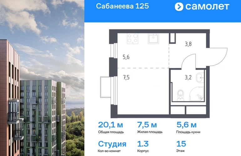 Строим кварталы для жизни с заботой о будущем. Предлагается квартира студия комфорт-класса 20,1 кв.м в корпусе 1.3 на 15 этаже, в ЖК «Сабанеева 125» Квартира без отделки. Доступность опции «отделка» и возможность комплектации мебелью и декором уточняйте у застройщика. Приобрести квартиру возможно по специальным акциям от застройщика, с текущими условиями акций можно ознакомиться в блоке «Акций». Цена динамическая и может отличаться, уточняйте актуальность у застройщика. В жилом комплексе «Сабанеева 125» вы ежедневно будете наслаждаться видами сопок. Холмистый рельеф защищает территорию от ветра. Комплекс расположен в Первореченском районе Владивостока, всего в 20 минутах на машине до центра города. На первых этажах откроются супермаркеты, кафе и пекарни. Для малышей — детский сад в 2 минутах пешком и школа в 10 минутах. За 6 минут можно доехать до Нагорного парка, а за 15 минут — до набережной Цесаревича с панорамой Золотого моста. Комплекс состоит из 3 монолитных домов высотой 25 этажей с фасадами, дизайн которых вдохновлен птицами Дальнего Востока. Дворы оформлены как сад с дальневосточной флорой, есть смотровые площадки, скалодром, перголы и игровые зоны для детей. Подземный паркинг — трехуровневый. В сквозные подъезды без ступеней и с помещением для колясок удобно заходить. В жилом комплексе «Сабанеева 125» есть квартиры с индивидуальными зелеными террасами, увеличенными окнами и панорамными балконами для чаепитий с видом на сопки и залив.#yan19-2r1672456#О застройщике