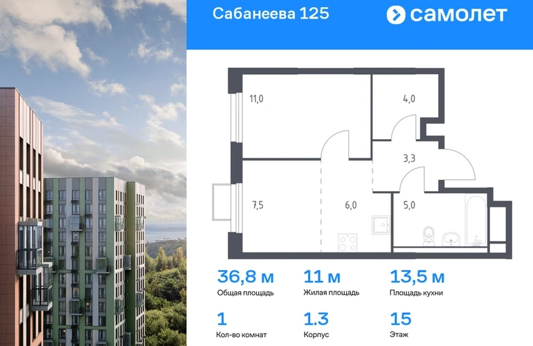 Строим кварталы для жизни с заботой о будущем. Предлагается 1-комнатная квартира комфорт-класса 36,8 кв.м в корпусе 1.3 на 15 этаже, в ЖК «Сабанеева 125» Квартира без отделки. Доступность опции «отделка» и возможность комплектации мебелью и декором уточняйте у застройщика. Приобрести квартиру возможно по специальным акциям от застройщика, с текущими условиями акций можно ознакомиться в блоке «Акций». Цена динамическая и может отличаться, уточняйте актуальность у застройщика. В жилом комплексе «Сабанеева 125» вы ежедневно будете наслаждаться видами сопок. Холмистый рельеф защищает территорию от ветра. Комплекс расположен в Первореченском районе Владивостока, всего в 20 минутах на машине до центра города. На первых этажах откроются супермаркеты, кафе и пекарни. Для малышей — детский сад в 2 минутах пешком и школа в 10 минутах. За 6 минут можно доехать до Нагорного парка, а за 15 минут — до набережной Цесаревича с панорамой Золотого моста. Комплекс состоит из 3 монолитных домов высотой 25 этажей с фасадами, дизайн которых вдохновлен птицами Дальнего Востока. Дворы оформлены как сад с дальневосточной флорой, есть смотровые площадки, скалодром, перголы и игровые зоны для детей. Подземный паркинг — трехуровневый. В сквозные подъезды без ступеней и с помещением для колясок удобно заходить. В жилом комплексе «Сабанеева 125» есть квартиры с индивидуальными зелеными террасами, увеличенными окнами и панорамными балконами для чаепитий с видом на сопки и залив.#yan19-2r1672469#О застройщике