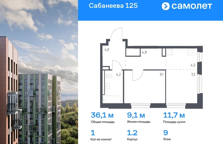 Строим кварталы для жизни с заботой о будущем. Предлагается 1-комнатная квартира комфорт-класса 36,1 кв.м в корпусе 1.2 на 9 этаже, в ЖК «Сабанеева 125» Квартира без отделки. Доступность опции «отделка» и возможность комплектации мебелью и декором уточняйте у застройщика. Приобрести квартиру возможно по специальным акциям от застройщика, с текущими условиями акций можно ознакомиться в блоке «Акций». Цена динамическая и может отличаться, уточняйте актуальность у застройщика. В жилом комплексе «Сабанеева 125» вы ежедневно будете наслаждаться видами сопок. Холмистый рельеф защищает территорию от ветра. Комплекс расположен в Первореченском районе Владивостока, всего в 20 минутах на машине до центра города. На первых этажах откроются супермаркеты, кафе и пекарни. Для малышей — детский сад в 2 минутах пешком и школа в 10 минутах. За 6 минут можно доехать до Нагорного парка, а за 15 минут — до набережной Цесаревича с панорамой Золотого моста. Комплекс состоит из 3 монолитных домов высотой 25 этажей с фасадами, дизайн которых вдохновлен птицами Дальнего Востока. Дворы оформлены как сад с дальневосточной флорой, есть смотровые площадки, скалодром, перголы и игровые зоны для детей. Подземный паркинг — трехуровневый. В сквозные подъезды без ступеней и с помещением для колясок удобно заходить. В жилом комплексе «Сабанеева 125» есть квартиры с индивидуальными зелеными террасами, увеличенными окнами и панорамными балконами для чаепитий с видом на сопки и залив.#yan19-2r1677028#О застройщике