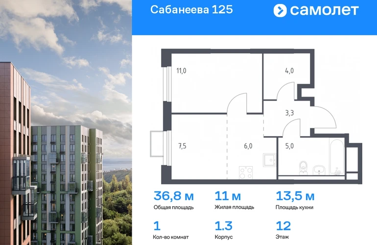 Строим кварталы для жизни с заботой о будущем. Предлагается 1-комнатная квартира комфорт-класса 36,8 кв.м в корпусе 1.3 на 12 этаже, в ЖК «Сабанеева 125» Квартира без отделки. Доступность опции «отделка» и возможность комплектации мебелью и декором уточняйте у застройщика. Приобрести квартиру возможно по специальным акциям от застройщика, с текущими условиями акций можно ознакомиться в блоке «Акций». Цена динамическая и может отличаться, уточняйте актуальность у застройщика. В жилом комплексе «Сабанеева 125» вы ежедневно будете наслаждаться видами сопок. Холмистый рельеф защищает территорию от ветра. Комплекс расположен в Первореченском районе Владивостока, всего в 20 минутах на машине до центра города. На первых этажах откроются супермаркеты, кафе и пекарни. Для малышей — детский сад в 2 минутах пешком и школа в 10 минутах. За 6 минут можно доехать до Нагорного парка, а за 15 минут — до набережной Цесаревича с панорамой Золотого моста. Комплекс состоит из 3 монолитных домов высотой 25 этажей с фасадами, дизайн которых вдохновлен птицами Дальнего Востока. Дворы оформлены как сад с дальневосточной флорой, есть смотровые площадки, скалодром, перголы и игровые зоны для детей. Подземный паркинг — трехуровневый. В сквозные подъезды без ступеней и с помещением для колясок удобно заходить. В жилом комплексе «Сабанеева 125» есть квартиры с индивидуальными зелеными террасами, увеличенными окнами и панорамными балконами для чаепитий с видом на сопки и залив.#yan19-2r1677040#О застройщике
