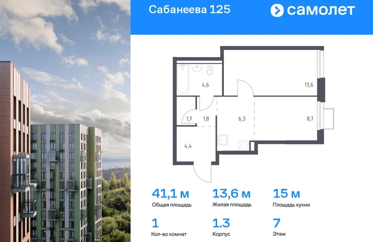 Строим кварталы для жизни с заботой о будущем. Предлагается 1-комнатная квартира комфорт-класса 41,1 кв.м в корпусе 1.3 на 7 этаже, в ЖК «Сабанеева 125» Квартира без отделки. Доступность опции «отделка» и возможность комплектации мебелью и декором уточняйте у застройщика. Приобрести квартиру возможно по специальным акциям от застройщика, с текущими условиями акций можно ознакомиться в блоке «Акций». Цена динамическая и может отличаться, уточняйте актуальность у застройщика. В жилом комплексе «Сабанеева 125» вы ежедневно будете наслаждаться видами сопок. Холмистый рельеф защищает территорию от ветра. Комплекс расположен в Первореченском районе Владивостока, всего в 20 минутах на машине до центра города. На первых этажах откроются супермаркеты, кафе и пекарни. Для малышей — детский сад в 2 минутах пешком и школа в 10 минутах. За 6 минут можно доехать до Нагорного парка, а за 15 минут — до набережной Цесаревича с панорамой Золотого моста. Комплекс состоит из 3 монолитных домов высотой 25 этажей с фасадами, дизайн которых вдохновлен птицами Дальнего Востока. Дворы оформлены как сад с дальневосточной флорой, есть смотровые площадки, скалодром, перголы и игровые зоны для детей. Подземный паркинг — трехуровневый. В сквозные подъезды без ступеней и с помещением для колясок удобно заходить. В жилом комплексе «Сабанеева 125» есть квартиры с индивидуальными зелеными террасами, увеличенными окнами и панорамными балконами для чаепитий с видом на сопки и залив.#yan19-2r1678643#О застройщике