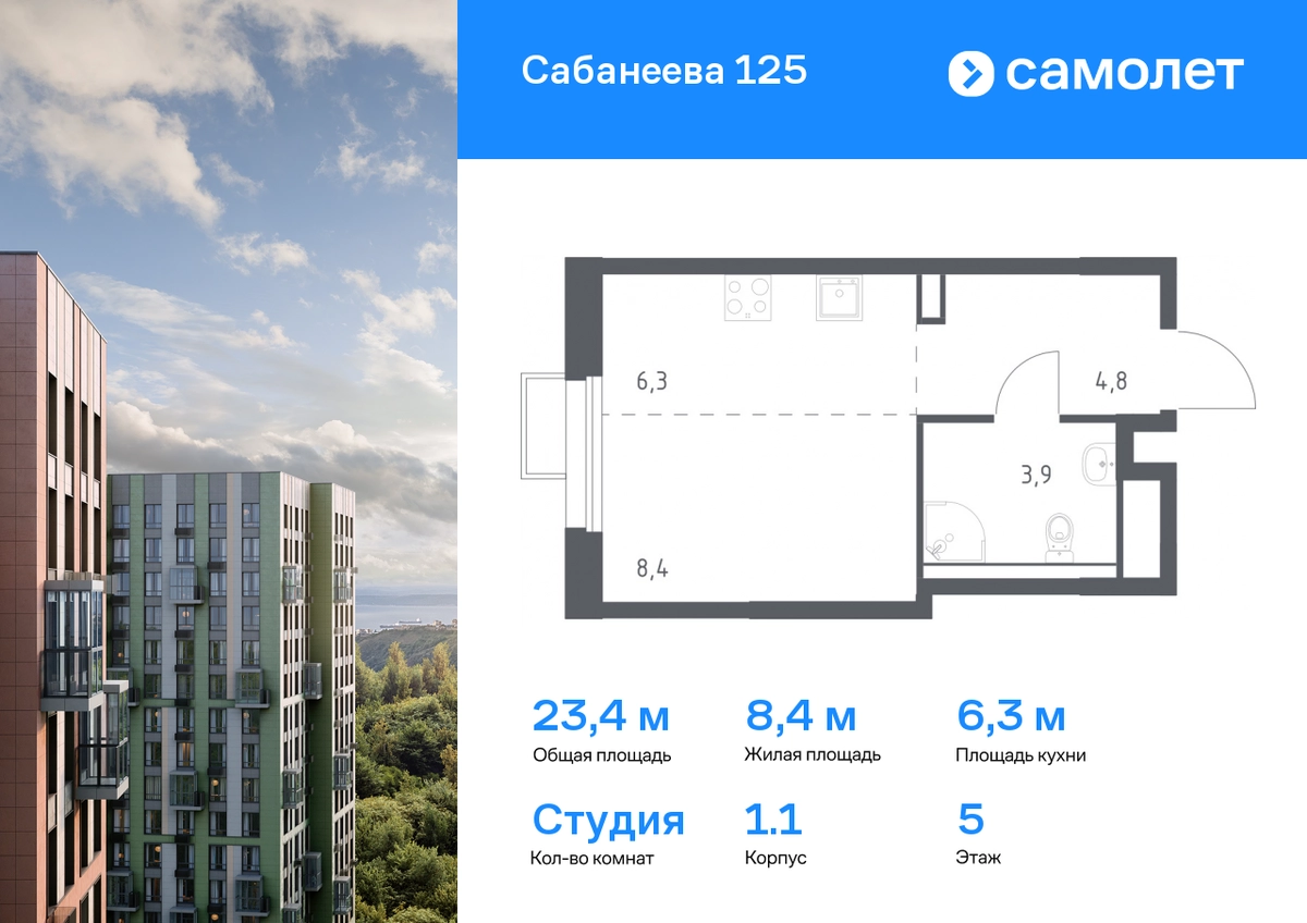 Строим кварталы для жизни с заботой о будущем. Предлагается квартира студия комфорт-класса 23,4 кв.м в корпусе 1.1 на 5 этаже, в ЖК «Сабанеева 125» Квартира без отделки. Доступность опции «отделка» и возможность комплектации мебелью и декором уточняйте у застройщика. Приобрести квартиру возможно по специальным акциям от застройщика, с текущими условиями акций можно ознакомиться в блоке «Акций». Цена динамическая и может отличаться, уточняйте актуальность у застройщика. В жилом комплексе «Сабанеева 125» вы ежедневно будете наслаждаться видами сопок. Холмистый рельеф защищает территорию от ветра. Комплекс расположен в Первореченском районе Владивостока, всего в 20 минутах на машине до центра города. На первых этажах откроются супермаркеты, кафе и пекарни. Для малышей — детский сад в 2 минутах пешком и школа в 10 минутах. За 6 минут можно доехать до Нагорного парка, а за 15 минут — до набережной Цесаревича с панорамой Золотого моста. Комплекс состоит из 3 монолитных домов высотой 25 этажей с фасадами, дизайн которых вдохновлен птицами Дальнего Востока. Дворы оформлены как сад с дальневосточной флорой, есть смотровые площадки, скалодром, перголы и игровые зоны для детей. Подземный паркинг — трехуровневый. В сквозные подъезды без ступеней и с помещением для колясок удобно заходить. В жилом комплексе «Сабанеева 125» есть квартиры с индивидуальными зелеными террасами, увеличенными окнами и панорамными балконами для чаепитий с видом на сопки и залив.#yan19-2r1678660#О застройщике