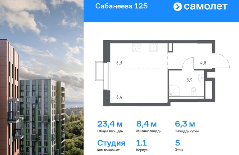 Строим кварталы для жизни с заботой о будущем. Предлагается квартира студия комфорт-класса 23,4 кв.м в корпусе 1.1 на 5 этаже, в ЖК «Сабанеева 125» Квартира без отделки. Доступность опции «отделка» и возможность комплектации мебелью и декором уточняйте у застройщика. Приобрести квартиру возможно по специальным акциям от застройщика, с текущими условиями акций можно ознакомиться в блоке «Акций». Цена динамическая и может отличаться, уточняйте актуальность у застройщика. В жилом комплексе «Сабанеева 125» вы ежедневно будете наслаждаться видами сопок. Холмистый рельеф защищает территорию от ветра. Комплекс расположен в Первореченском районе Владивостока, всего в 20 минутах на машине до центра города. На первых этажах откроются супермаркеты, кафе и пекарни. Для малышей — детский сад в 2 минутах пешком и школа в 10 минутах. За 6 минут можно доехать до Нагорного парка, а за 15 минут — до набережной Цесаревича с панорамой Золотого моста. Комплекс состоит из 3 монолитных домов высотой 25 этажей с фасадами, дизайн которых вдохновлен птицами Дальнего Востока. Дворы оформлены как сад с дальневосточной флорой, есть смотровые площадки, скалодром, перголы и игровые зоны для детей. Подземный паркинг — трехуровневый. В сквозные подъезды без ступеней и с помещением для колясок удобно заходить. В жилом комплексе «Сабанеева 125» есть квартиры с индивидуальными зелеными террасами, увеличенными окнами и панорамными балконами для чаепитий с видом на сопки и залив.#yan19-2r1678660#О застройщике