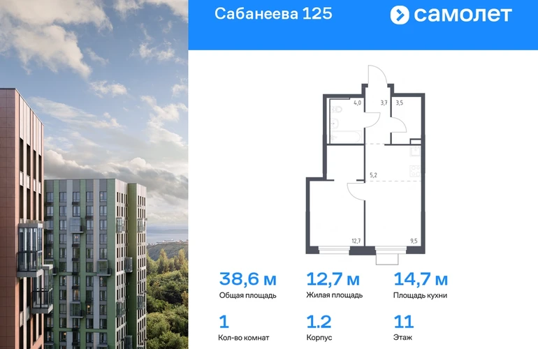 Строим кварталы для жизни с заботой о будущем. Предлагается 1-комнатная квартира комфорт-класса 38,6 кв.м в корпусе 1.2 на 11 этаже, в ЖК «Сабанеева 125» Квартира без отделки. Доступность опции «отделка» и возможность комплектации мебелью и декором уточняйте у застройщика. Приобрести квартиру возможно по специальным акциям от застройщика, с текущими условиями акций можно ознакомиться в блоке «Акций». Цена динамическая и может отличаться, уточняйте актуальность у застройщика. В жилом комплексе «Сабанеева 125» вы ежедневно будете наслаждаться видами сопок. Холмистый рельеф защищает территорию от ветра. Комплекс расположен в Первореченском районе Владивостока, всего в 20 минутах на машине до центра города. На первых этажах откроются супермаркеты, кафе и пекарни. Для малышей — детский сад в 2 минутах пешком и школа в 10 минутах. За 6 минут можно доехать до Нагорного парка, а за 15 минут — до набережной Цесаревича с панорамой Золотого моста. Комплекс состоит из 3 монолитных домов высотой 25 этажей с фасадами, дизайн которых вдохновлен птицами Дальнего Востока. Дворы оформлены как сад с дальневосточной флорой, есть смотровые площадки, скалодром, перголы и игровые зоны для детей. Подземный паркинг — трехуровневый. В сквозные подъезды без ступеней и с помещением для колясок удобно заходить. В жилом комплексе «Сабанеева 125» есть квартиры с индивидуальными зелеными террасами, увеличенными окнами и панорамными балконами для чаепитий с видом на сопки и залив.#yan19-2r1694066#О застройщике