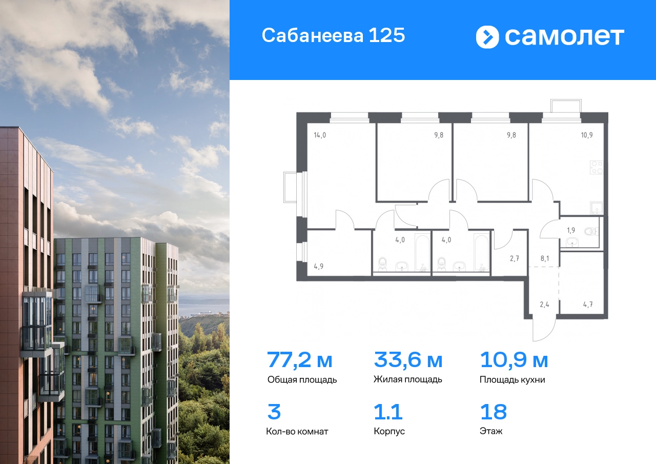 Предлагается 3-комнатная квартира комфорт-класса 77,2 кв.м в корпусе 1.1 на 18 этаже, в ЖК «Сабанеева 125» Квартира без отделки. Доступность опции «отделка» и возможность комплектации мебелью и декором уточняйте у застройщика. Приобрести квартиру возможно по специальным акциям от застройщика, с текущими условиями акций можно ознакомиться в блоке «Акций». Цена динамическая и может отличаться, уточняйте актуальность у застройщика. В жилом комплексе «Сабанеева 125» вы ежедневно будете наслаждаться видами сопок. Холмистый рельеф защищает территорию от ветра. Комплекс расположен в Первореченском районе Владивостока, всего в 20 минутах на машине до центра города. На первых этажах откроются супермаркеты, кафе и пекарни. Для малышей — детский сад в 2 минутах пешком и школа в 10 минутах. За 6 минут можно доехать до Нагорного парка, а за 15 минут — до набережной Цесаревича с панорамой Золотого моста. Комплекс состоит из 3 монолитных домов высотой 25 этажей с фасадами, дизайн которых вдохновлен птицами Дальнего Востока. Дворы оформлены как сад с дальневосточной флорой, есть смотровые площадки, скалодром, перголы и игровые зоны для детей. Подземный паркинг — трехуровневый. В сквозные подъезды без ступеней и с помещением для колясок удобно заходить. В жилом комплексе «Сабанеева 125» есть квартиры с индивидуальными зелеными террасами, увеличенными окнами и панорамными балконами для чаепитий с видом на сопки и залив.#yan19-2r1743695#О застройщике