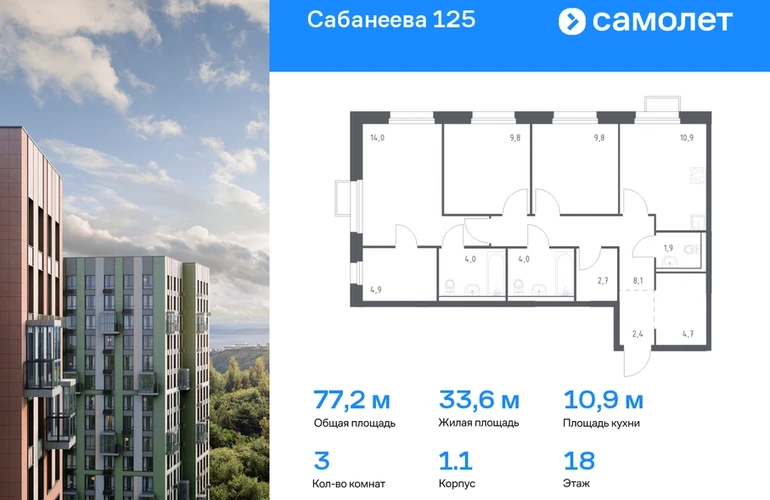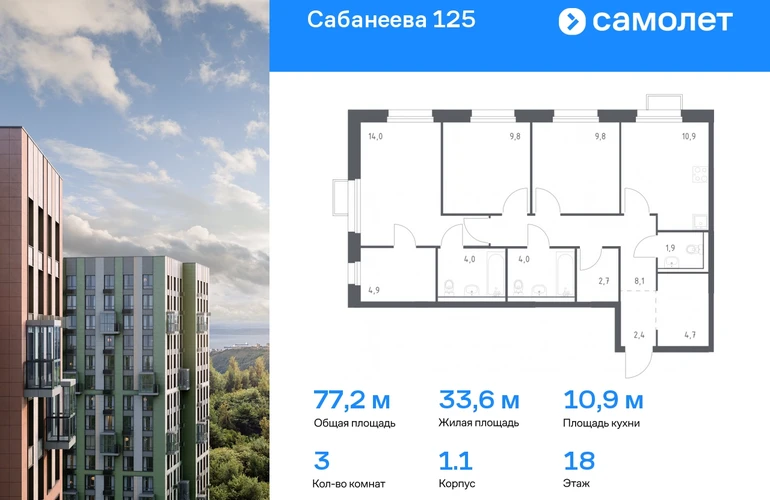 Предлагается 3-комнатная квартира комфорт-класса 77,2 кв.м в корпусе 1.1 на 18 этаже, в ЖК «Сабанеева 125» Квартира без отделки. Доступность опции «отделка» и возможность комплектации мебелью и декором уточняйте у застройщика. Приобрести квартиру возможно по специальным акциям от застройщика, с текущими условиями акций можно ознакомиться в блоке «Акций». Цена динамическая и может отличаться, уточняйте актуальность у застройщика. В жилом комплексе «Сабанеева 125» вы ежедневно будете наслаждаться видами сопок. Холмистый рельеф защищает территорию от ветра. Комплекс расположен в Первореченском районе Владивостока, всего в 20 минутах на машине до центра города. На первых этажах откроются супермаркеты, кафе и пекарни. Для малышей — детский сад в 2 минутах пешком и школа в 10 минутах. За 6 минут можно доехать до Нагорного парка, а за 15 минут — до набережной Цесаревича с панорамой Золотого моста. Комплекс состоит из 3 монолитных домов высотой 25 этажей с фасадами, дизайн которых вдохновлен птицами Дальнего Востока. Дворы оформлены как сад с дальневосточной флорой, есть смотровые площадки, скалодром, перголы и игровые зоны для детей. Подземный паркинг — трехуровневый. В сквозные подъезды без ступеней и с помещением для колясок удобно заходить. В жилом комплексе «Сабанеева 125» есть квартиры с индивидуальными зелеными террасами, увеличенными окнами и панорамными балконами для чаепитий с видом на сопки и залив.#yan19-2r1743695#О застройщике