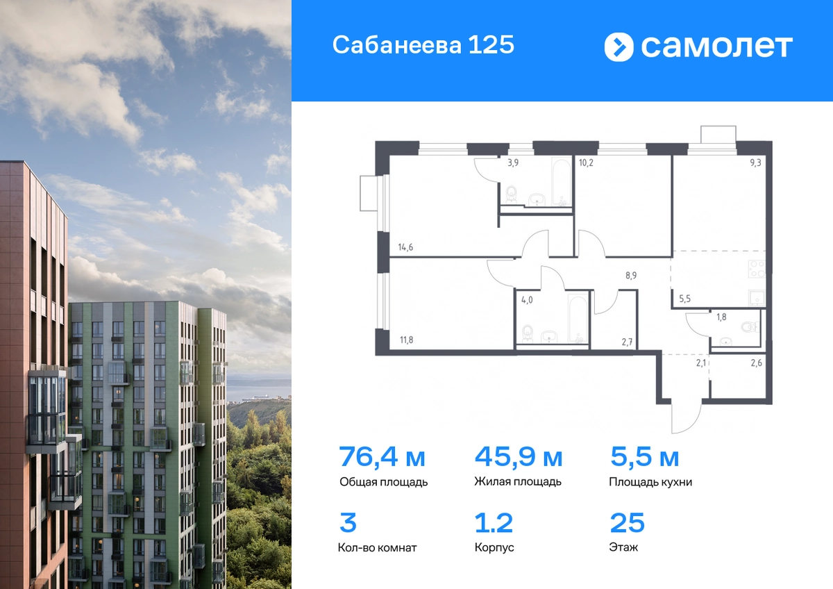 Предлагается 3-комнатная квартира комфорт-класса 76,4 кв.м в корпусе 1.2 на 25 этаже, в ЖК «Сабанеева 125» Квартира без отделки. Доступность опции «отделка» и возможность комплектации мебелью и декором уточняйте у застройщика. Приобрести квартиру возможно по специальным акциям от застройщика, с текущими условиями акций можно ознакомиться в блоке «Акций». Цена динамическая и может отличаться, уточняйте актуальность у застройщика. В жилом комплексе «Сабанеева 125» вы ежедневно будете наслаждаться видами сопок. Холмистый рельеф защищает территорию от ветра. Комплекс расположен в Первореченском районе Владивостока, всего в 20 минутах на машине до центра города. На первых этажах откроются супермаркеты, кафе и пекарни. Для малышей — детский сад в 2 минутах пешком и школа в 10 минутах. За 6 минут можно доехать до Нагорного парка, а за 15 минут — до набережной Цесаревича с панорамой Золотого моста. Комплекс состоит из 3 монолитных домов высотой 25 этажей с фасадами, дизайн которых вдохновлен птицами Дальнего Востока. Дворы оформлены как сад с дальневосточной флорой, есть смотровые площадки, скалодром, перголы и игровые зоны для детей. Подземный паркинг — трехуровневый. В сквозные подъезды без ступеней и с помещением для колясок удобно заходить. В жилом комплексе «Сабанеева 125» есть квартиры с индивидуальными зелеными террасами, увеличенными окнами и панорамными балконами для чаепитий с видом на сопки и залив.#yan19-2r1743703#О застройщике