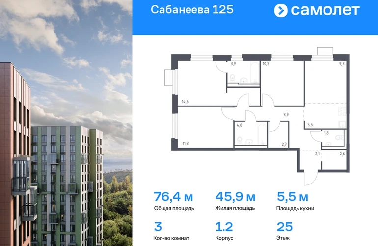 Предлагается 3-комнатная квартира комфорт-класса 76,4 кв.м в корпусе 1.2 на 25 этаже, в ЖК «Сабанеева 125» Квартира без отделки. Доступность опции «отделка» и возможность комплектации мебелью и декором уточняйте у застройщика. Приобрести квартиру возможно по специальным акциям от застройщика, с текущими условиями акций можно ознакомиться в блоке «Акций». Цена динамическая и может отличаться, уточняйте актуальность у застройщика. В жилом комплексе «Сабанеева 125» вы ежедневно будете наслаждаться видами сопок. Холмистый рельеф защищает территорию от ветра. Комплекс расположен в Первореченском районе Владивостока, всего в 20 минутах на машине до центра города. На первых этажах откроются супермаркеты, кафе и пекарни. Для малышей — детский сад в 2 минутах пешком и школа в 10 минутах. За 6 минут можно доехать до Нагорного парка, а за 15 минут — до набережной Цесаревича с панорамой Золотого моста. Комплекс состоит из 3 монолитных домов высотой 25 этажей с фасадами, дизайн которых вдохновлен птицами Дальнего Востока. Дворы оформлены как сад с дальневосточной флорой, есть смотровые площадки, скалодром, перголы и игровые зоны для детей. Подземный паркинг — трехуровневый. В сквозные подъезды без ступеней и с помещением для колясок удобно заходить. В жилом комплексе «Сабанеева 125» есть квартиры с индивидуальными зелеными террасами, увеличенными окнами и панорамными балконами для чаепитий с видом на сопки и залив.#yan19-2r1743703#О застройщике