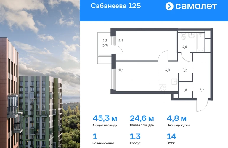 Предлагается 1-комнатная квартира комфорт-класса 45,3 кв.м в корпусе 1.3 на 14 этаже, в ЖК «Сабанеева 125» Квартира без отделки. Доступность опции «отделка» и возможность комплектации мебелью и декором уточняйте у застройщика. Приобрести квартиру возможно по специальным акциям от застройщика, с текущими условиями акций можно ознакомиться в блоке «Акций». Цена динамическая и может отличаться, уточняйте актуальность у застройщика. В жилом комплексе «Сабанеева 125» вы ежедневно будете наслаждаться видами сопок. Холмистый рельеф защищает территорию от ветра. Комплекс расположен в Первореченском районе Владивостока, всего в 20 минутах на машине до центра города. На первых этажах откроются супермаркеты, кафе и пекарни. Для малышей — детский сад в 2 минутах пешком и школа в 10 минутах. За 6 минут можно доехать до Нагорного парка, а за 15 минут — до набережной Цесаревича с панорамой Золотого моста. Комплекс состоит из 3 монолитных домов высотой 25 этажей с фасадами, дизайн которых вдохновлен птицами Дальнего Востока. Дворы оформлены как сад с дальневосточной флорой, есть смотровые площадки, скалодром, перголы и игровые зоны для детей. Подземный паркинг — трехуровневый. В сквозные подъезды без ступеней и с помещением для колясок удобно заходить. В жилом комплексе «Сабанеева 125» есть квартиры с индивидуальными зелеными террасами, увеличенными окнами и панорамными балконами для чаепитий с видом на сопки и залив.#yan19-2r1743707#О застройщике