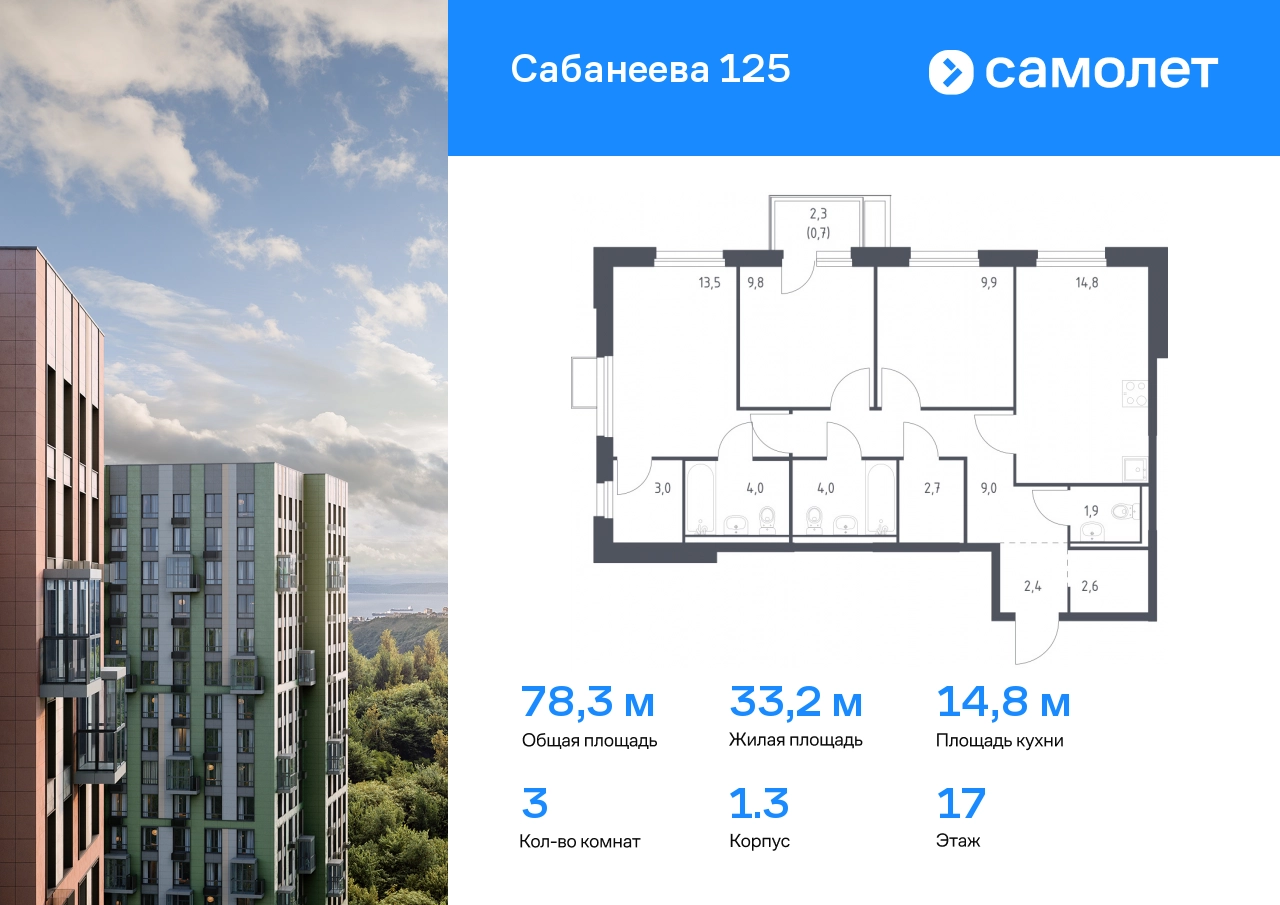 Предлагается 3-комнатная квартира комфорт-класса 78,3 кв.м в корпусе 1.3 на 17 этаже, в ЖК «Сабанеева 125» Квартира без отделки. Доступность опции «отделка» и возможность комплектации мебелью и декором уточняйте у застройщика. Приобрести квартиру возможно по специальным акциям от застройщика, с текущими условиями акций можно ознакомиться в блоке «Акций». Цена динамическая и может отличаться, уточняйте актуальность у застройщика. В жилом комплексе «Сабанеева 125» вы ежедневно будете наслаждаться видами сопок. Холмистый рельеф защищает территорию от ветра. Комплекс расположен в Первореченском районе Владивостока, всего в 20 минутах на машине до центра города. На первых этажах откроются супермаркеты, кафе и пекарни. Для малышей — детский сад в 2 минутах пешком и школа в 10 минутах. За 6 минут можно доехать до Нагорного парка, а за 15 минут — до набережной Цесаревича с панорамой Золотого моста. Комплекс состоит из 3 монолитных домов высотой 25 этажей с фасадами, дизайн которых вдохновлен птицами Дальнего Востока. Дворы оформлены как сад с дальневосточной флорой, есть смотровые площадки, скалодром, перголы и игровые зоны для детей. Подземный паркинг — трехуровневый. В сквозные подъезды без ступеней и с помещением для колясок удобно заходить. В жилом комплексе «Сабанеева 125» есть квартиры с индивидуальными зелеными террасами, увеличенными окнами и панорамными балконами для чаепитий с видом на сопки и залив.#yan19-2r1743714#О застройщике
