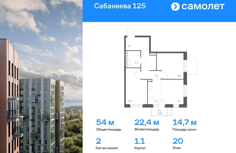 Предлагается 2-комнатная квартира комфорт-класса 54 кв.м в корпусе 1.1 на 20 этаже, в ЖК «Сабанеева 125» Квартира без отделки. Доступность опции «отделка» и возможность комплектации мебелью и декором уточняйте у застройщика. Приобрести квартиру возможно по специальным акциям от застройщика, с текущими условиями акций можно ознакомиться в блоке «Акций». Цена динамическая и может отличаться, уточняйте актуальность у застройщика. В жилом комплексе «Сабанеева 125» вы ежедневно будете наслаждаться видами сопок. Холмистый рельеф защищает территорию от ветра. Комплекс расположен в Первореченском районе Владивостока, всего в 20 минутах на машине до центра города. На первых этажах откроются супермаркеты, кафе и пекарни. Для малышей — детский сад в 2 минутах пешком и школа в 10 минутах. За 6 минут можно доехать до Нагорного парка, а за 15 минут — до набережной Цесаревича с панорамой Золотого моста. Комплекс состоит из 3 монолитных домов высотой 25 этажей с фасадами, дизайн которых вдохновлен птицами Дальнего Востока. Дворы оформлены как сад с дальневосточной флорой, есть смотровые площадки, скалодром, перголы и игровые зоны для детей. Подземный паркинг — трехуровневый. В сквозные подъезды без ступеней и с помещением для колясок удобно заходить. В жилом комплексе «Сабанеева 125» есть квартиры с индивидуальными зелеными террасами, увеличенными окнами и панорамными балконами для чаепитий с видом на сопки и залив.#yan19-2r1743718#О застройщике