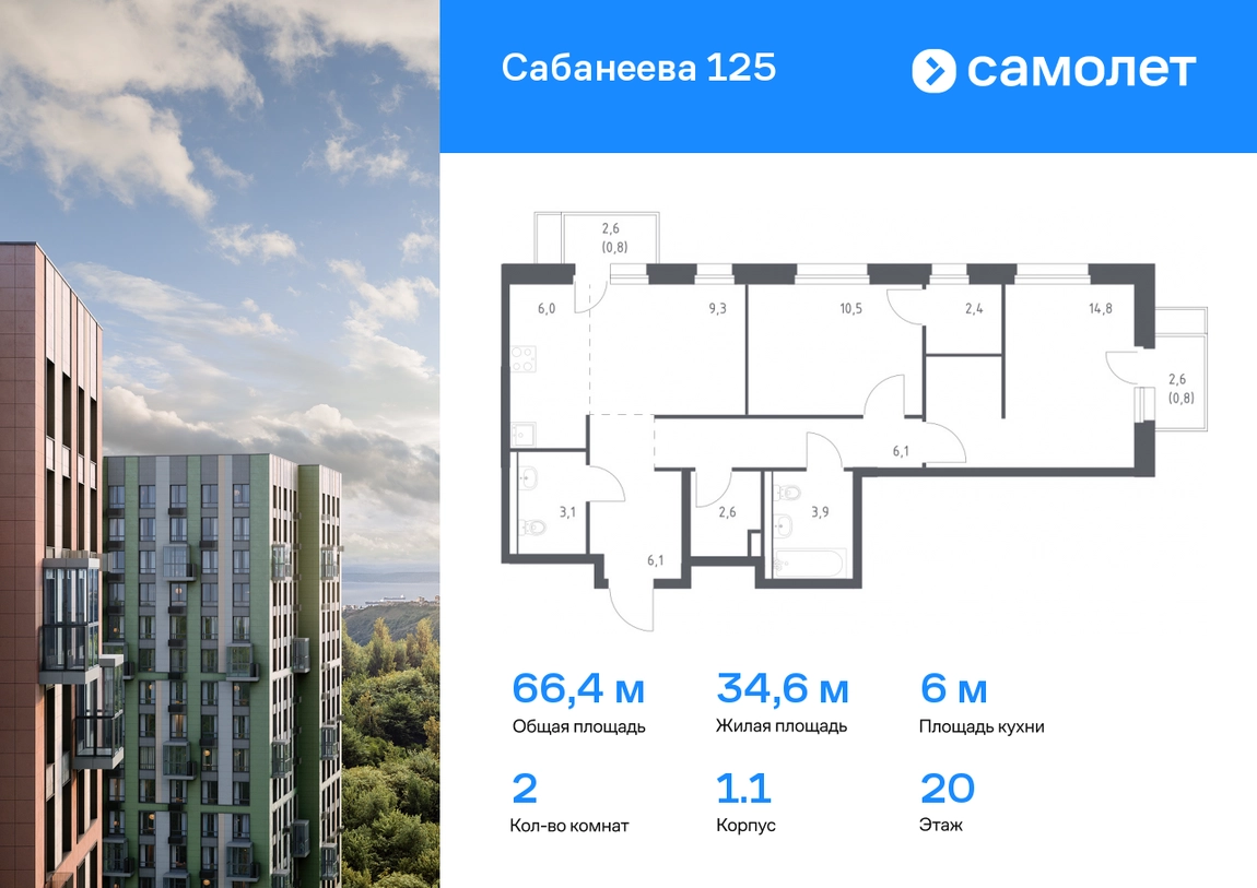 Предлагается 2-комнатная квартира комфорт-класса 66,4 кв.м в корпусе 1.1 на 20 этаже, в ЖК «Сабанеева 125» Квартира без отделки. Доступность опции «отделка» и возможность комплектации мебелью и декором уточняйте у застройщика. Приобрести квартиру возможно по специальным акциям от застройщика, с текущими условиями акций можно ознакомиться в блоке «Акций». Цена динамическая и может отличаться, уточняйте актуальность у застройщика. В жилом комплексе «Сабанеева 125» вы ежедневно будете наслаждаться видами сопок. Холмистый рельеф защищает территорию от ветра. Комплекс расположен в Первореченском районе Владивостока, всего в 20 минутах на машине до центра города. На первых этажах откроются супермаркеты, кафе и пекарни. Для малышей — детский сад в 2 минутах пешком и школа в 10 минутах. За 6 минут можно доехать до Нагорного парка, а за 15 минут — до набережной Цесаревича с панорамой Золотого моста. Комплекс состоит из 3 монолитных домов высотой 25 этажей с фасадами, дизайн которых вдохновлен птицами Дальнего Востока. Дворы оформлены как сад с дальневосточной флорой, есть смотровые площадки, скалодром, перголы и игровые зоны для детей. Подземный паркинг — трехуровневый. В сквозные подъезды без ступеней и с помещением для колясок удобно заходить. В жилом комплексе «Сабанеева 125» есть квартиры с индивидуальными зелеными террасами, увеличенными окнами и панорамными балконами для чаепитий с видом на сопки и залив.#yan19-2r1743719#О застройщике