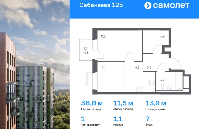 Строим кварталы для жизни с заботой о будущем. Предлагается 1-комнатная квартира комфорт-класса 38,8 кв.м в корпусе 1.1 на 7 этаже, в ЖК «Сабанеева 125» Квартира без отделки. Доступность опции «отделка» и возможность комплектации мебелью и декором уточняйте у застройщика. Приобрести квартиру возможно по специальным акциям от застройщика, с текущими условиями акций можно ознакомиться в блоке «Акций». Цена динамическая и может отличаться, уточняйте актуальность у застройщика. В жилом комплексе «Сабанеева 125» вы ежедневно будете наслаждаться видами сопок. Холмистый рельеф защищает территорию от ветра. Комплекс расположен в Первореченском районе Владивостока, всего в 20 минутах на машине до центра города. На первых этажах откроются супермаркеты, кафе и пекарни. Для малышей — детский сад в 2 минутах пешком и школа в 10 минутах. За 6 минут можно доехать до Нагорного парка, а за 15 минут — до набережной Цесаревича с панорамой Золотого моста. Комплекс состоит из 3 монолитных домов высотой 25 этажей с фасадами, дизайн которых вдохновлен птицами Дальнего Востока. Дворы оформлены как сад с дальневосточной флорой, есть смотровые площадки, скалодром, перголы и игровые зоны для детей. Подземный паркинг — трехуровневый. В сквозные подъезды без ступеней и с помещением для колясок удобно заходить. В жилом комплексе «Сабанеева 125» есть квартиры с индивидуальными зелеными террасами, увеличенными окнами и панорамными балконами для чаепитий с видом на сопки и залив.#yan19-2r1755162#О застройщике