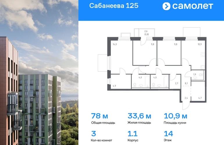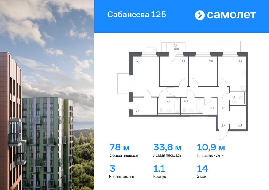 Предлагается 3-комнатная квартира комфорт-класса 78 кв.м в корпусе 1.1 на 14 этаже, в ЖК «Сабанеева 125» Квартира с чистовой отделкой. Доступность дополнительных опций уточняйте у застройщика. Приобрести квартиру возможно по специальным акциям от застройщика, с текущими условиями акций можно ознакомиться в блоке «Акций». Цена динамическая и может отличаться, уточняйте актуальность у застройщика. В жилом комплексе «Сабанеева 125» вы ежедневно будете наслаждаться видами сопок. Холмистый рельеф защищает территорию от ветра. Комплекс расположен в Первореченском районе Владивостока, всего в 20 минутах на машине до центра города. На первых этажах откроются супермаркеты, кафе и пекарни. Для малышей — детский сад в 2 минутах пешком и школа в 10 минутах. За 6 минут можно доехать до Нагорного парка, а за 15 минут — до набережной Цесаревича с панорамой Золотого моста. Комплекс состоит из 3 монолитных домов высотой 25 этажей с фасадами, дизайн которых вдохновлен птицами Дальнего Востока. Дворы оформлены как сад с дальневосточной флорой, есть смотровые площадки, скалодром, перголы и игровые зоны для детей. Подземный паркинг — трехуровневый. В сквозные подъезды без ступеней и с помещением для колясок удобно заходить. В жилом комплексе «Сабанеева 125» есть квартиры с индивидуальными зелеными террасами, увеличенными окнами и панорамными балконами для чаепитий с видом на сопки и залив.#yan19-2r1773987#О застройщике