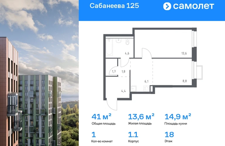 Строим кварталы для жизни с заботой о будущем. Предлагается 1-комнатная квартира комфорт-класса 41 кв.м в корпусе 1.1 на 18 этаже, в ЖК «Сабанеева 125» Квартира без отделки. Доступность опции «отделка» и возможность комплектации мебелью и декором уточняйте у застройщика. Приобрести квартиру возможно по специальным акциям от застройщика, с текущими условиями акций можно ознакомиться в блоке «Акций». Цена динамическая и может отличаться, уточняйте актуальность у застройщика. В жилом комплексе «Сабанеева 125» вы ежедневно будете наслаждаться видами сопок. Холмистый рельеф защищает территорию от ветра. Комплекс расположен в Первореченском районе Владивостока, всего в 20 минутах на машине до центра города. На первых этажах откроются супермаркеты, кафе и пекарни. Для малышей — детский сад в 2 минутах пешком и школа в 10 минутах. За 6 минут можно доехать до Нагорного парка, а за 15 минут — до набережной Цесаревича с панорамой Золотого моста. Комплекс состоит из 3 монолитных домов высотой 25 этажей с фасадами, дизайн которых вдохновлен птицами Дальнего Востока. Дворы оформлены как сад с дальневосточной флорой, есть смотровые площадки, скалодром, перголы и игровые зоны для детей. Подземный паркинг — трехуровневый. В сквозные подъезды без ступеней и с помещением для колясок удобно заходить. В жилом комплексе «Сабанеева 125» есть квартиры с индивидуальными зелеными террасами, увеличенными окнами и панорамными балконами для чаепитий с видом на сопки и залив.#yan19-2r1807849#О застройщике