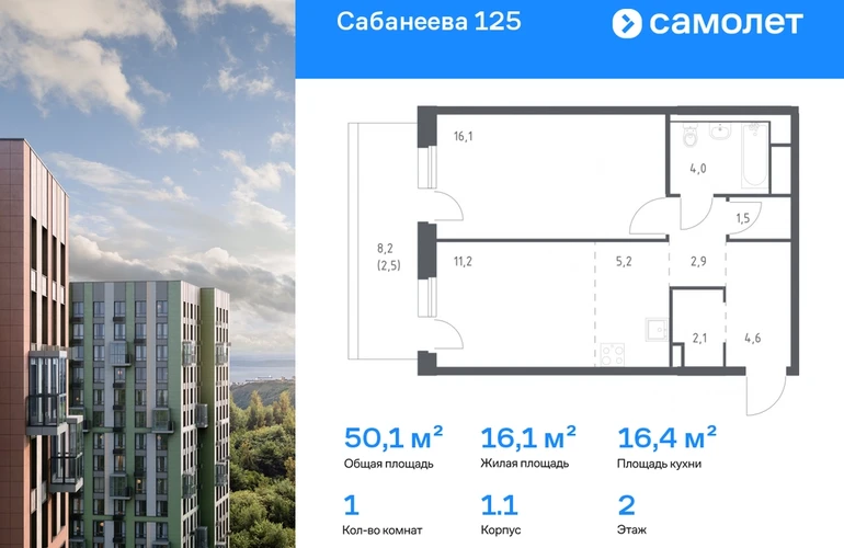 Строим кварталы для жизни с заботой о будущем. Предлагается 1-комнатная квартира комфорт-класса 50,1 кв.м в корпусе 1.1 на 2 этаже, в ЖК «Сабанеева 125» Квартира без отделки. Доступность опции «отделка» и возможность комплектации мебелью и декором уточняйте у застройщика. Приобрести квартиру возможно по специальным акциям от застройщика, с текущими условиями акций можно ознакомиться в блоке «Акций». Цена динамическая и может отличаться, уточняйте актуальность у застройщика. В жилом комплексе «Сабанеева 125» вы ежедневно будете наслаждаться видами сопок. Холмистый рельеф защищает территорию от ветра. Комплекс расположен в Первореченском районе Владивостока, всего в 20 минутах на машине до центра города. На первых этажах откроются супермаркеты, кафе и пекарни. Для малышей — детский сад в 2 минутах пешком и школа в 10 минутах. За 6 минут можно доехать до Нагорного парка, а за 15 минут — до набережной Цесаревича с панорамой Золотого моста. Комплекс состоит из 3 монолитных домов высотой 25 этажей с фасадами, дизайн которых вдохновлен птицами Дальнего Востока. Дворы оформлены как сад с дальневосточной флорой, есть смотровые площадки, скалодром, перголы и игровые зоны для детей. Подземный паркинг — трехуровневый. В сквозные подъезды без ступеней и с помещением для колясок удобно заходить. В жилом комплексе «Сабанеева 125» есть квартиры с индивидуальными зелеными террасами, увеличенными окнами и панорамными балконами для чаепитий с видом на сопки и залив.#yan19-2r1807859#О застройщике