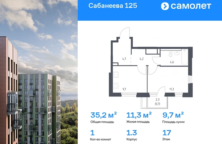 Строим кварталы для жизни с заботой о будущем. Предлагается 1-комнатная квартира комфорт-класса 35,2 кв.м в корпусе 1.3 на 17 этаже, в ЖК «Сабанеева 125» Квартира без отделки. Доступность опции «отделка» и возможность комплектации мебелью и декором уточняйте у застройщика. Приобрести квартиру возможно по специальным акциям от застройщика, с текущими условиями акций можно ознакомиться в блоке «Акций». Цена динамическая и может отличаться, уточняйте актуальность у застройщика. В жилом комплексе «Сабанеева 125» вы ежедневно будете наслаждаться видами сопок. Холмистый рельеф защищает территорию от ветра. Комплекс расположен в Первореченском районе Владивостока, всего в 20 минутах на машине до центра города. На первых этажах откроются супермаркеты, кафе и пекарни. Для малышей — детский сад в 2 минутах пешком и школа в 10 минутах. За 6 минут можно доехать до Нагорного парка, а за 15 минут — до набережной Цесаревича с панорамой Золотого моста. Комплекс состоит из 3 монолитных домов высотой 25 этажей с фасадами, дизайн которых вдохновлен птицами Дальнего Востока. Дворы оформлены как сад с дальневосточной флорой, есть смотровые площадки, скалодром, перголы и игровые зоны для детей. Подземный паркинг — трехуровневый. В сквозные подъезды без ступеней и с помещением для колясок удобно заходить. В жилом комплексе «Сабанеева 125» есть квартиры с индивидуальными зелеными террасами, увеличенными окнами и панорамными балконами для чаепитий с видом на сопки и залив.#yan19-2r1807880#О застройщике