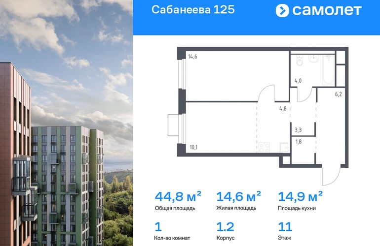 Строим кварталы для жизни с заботой о будущем. Предлагается 1-комнатная квартира комфорт-класса 44,8 кв.м в корпусе 1.2 на 11 этаже, в ЖК «Сабанеева 125» Квартира без отделки. Доступность опции «отделка» и возможность комплектации мебелью и декором уточняйте у застройщика. Приобрести квартиру возможно по специальным акциям от застройщика, с текущими условиями акций можно ознакомиться в блоке «Акций». Цена динамическая и может отличаться, уточняйте актуальность у застройщика. В жилом комплексе «Сабанеева 125» вы ежедневно будете наслаждаться видами сопок. Холмистый рельеф защищает территорию от ветра. Комплекс расположен в Первореченском районе Владивостока, всего в 20 минутах на машине до центра города. На первых этажах откроются супермаркеты, кафе и пекарни. Для малышей — детский сад в 2 минутах пешком и школа в 10 минутах. За 6 минут можно доехать до Нагорного парка, а за 15 минут — до набережной Цесаревича с панорамой Золотого моста. Комплекс состоит из 3 монолитных домов высотой 25 этажей с фасадами, дизайн которых вдохновлен птицами Дальнего Востока. Дворы оформлены как сад с дальневосточной флорой, есть смотровые площадки, скалодром, перголы и игровые зоны для детей. Подземный паркинг — трехуровневый. В сквозные подъезды без ступеней и с помещением для колясок удобно заходить. В жилом комплексе «Сабанеева 125» есть квартиры с индивидуальными зелеными террасами, увеличенными окнами и панорамными балконами для чаепитий с видом на сопки и залив.#yan19-2r1807913#О застройщике