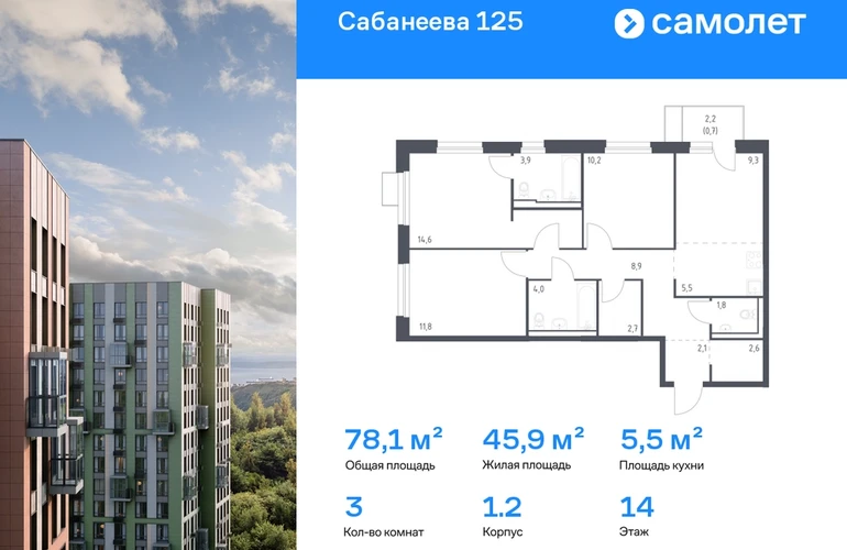 Строим кварталы для жизни с заботой о будущем. Предлагается 3-комнатная квартира комфорт-класса 78,1 кв.м в корпусе 1.2 на 14 этаже, в ЖК «Сабанеева 125» Квартира без отделки. Доступность опции «отделка» и возможность комплектации мебелью и декором уточняйте у застройщика. Приобрести квартиру возможно по специальным акциям от застройщика, с текущими условиями акций можно ознакомиться в блоке «Акций». Цена динамическая и может отличаться, уточняйте актуальность у застройщика. В жилом комплексе «Сабанеева 125» вы ежедневно будете наслаждаться видами сопок. Холмистый рельеф защищает территорию от ветра. Комплекс расположен в Первореченском районе Владивостока, всего в 20 минутах на машине до центра города. На первых этажах откроются супермаркеты, кафе и пекарни. Для малышей — детский сад в 2 минутах пешком и школа в 10 минутах. За 6 минут можно доехать до Нагорного парка, а за 15 минут — до набережной Цесаревича с панорамой Золотого моста. Комплекс состоит из 3 монолитных домов высотой 25 этажей с фасадами, дизайн которых вдохновлен птицами Дальнего Востока. Дворы оформлены как сад с дальневосточной флорой, есть смотровые площадки, скалодром, перголы и игровые зоны для детей. Подземный паркинг — трехуровневый. В сквозные подъезды без ступеней и с помещением для колясок удобно заходить. В жилом комплексе «Сабанеева 125» есть квартиры с индивидуальными зелеными террасами, увеличенными окнами и панорамными балконами для чаепитий с видом на сопки и залив.#yan19-2r1807932#О застройщике