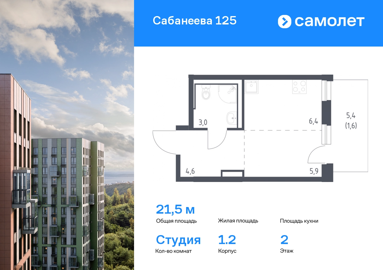 Строим кварталы для жизни с заботой о будущем. Предлагается квартира студия комфорт-класса 21,5 кв.м в корпусе 1.2 на 2 этаже, в ЖК «Сабанеева 125» Квартира без отделки. Доступность опции «отделка» и возможность комплектации мебелью и декором уточняйте у застройщика. Приобрести квартиру возможно по специальным акциям от застройщика, с текущими условиями акций можно ознакомиться в блоке «Акций». Цена динамическая и может отличаться, уточняйте актуальность у застройщика. В жилом комплексе «Сабанеева 125» вы ежедневно будете наслаждаться видами сопок. Холмистый рельеф защищает территорию от ветра. Комплекс расположен в Первореченском районе Владивостока, всего в 20 минутах на машине до центра города. На первых этажах откроются супермаркеты, кафе и пекарни. Для малышей — детский сад в 2 минутах пешком и школа в 10 минутах. За 6 минут можно доехать до Нагорного парка, а за 15 минут — до набережной Цесаревича с панорамой Золотого моста. Комплекс состоит из 3 монолитных домов высотой 25 этажей с фасадами, дизайн которых вдохновлен птицами Дальнего Востока. Дворы оформлены как сад с дальневосточной флорой, есть смотровые площадки, скалодром, перголы и игровые зоны для детей. Подземный паркинг — трехуровневый. В сквозные подъезды без ступеней и с помещением для колясок удобно заходить. В жилом комплексе «Сабанеева 125» есть квартиры с индивидуальными зелеными террасами, увеличенными окнами и панорамными балконами для чаепитий с видом на сопки и залив.#yan19-2r1810601#О застройщике