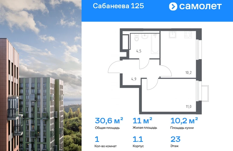 Строим кварталы для жизни с заботой о будущем. Предлагается 1-комнатная квартира комфорт-класса 30,6 кв.м в корпусе 1.1 на 23 этаже, в ЖК «Сабанеева 125» Квартира с чистовой отделкой. Доступность дополнительных опций уточняйте у застройщика. Приобрести квартиру возможно по специальным акциям от застройщика, с текущими условиями акций можно ознакомиться в блоке «Акций». Цена динамическая и может отличаться, уточняйте актуальность у застройщика. В жилом комплексе «Сабанеева 125» вы ежедневно будете наслаждаться видами сопок. Холмистый рельеф защищает территорию от ветра. Комплекс расположен в Первореченском районе Владивостока, всего в 20 минутах на машине до центра города. На первых этажах откроются супермаркеты, кафе и пекарни. Для малышей — детский сад в 2 минутах пешком и школа в 10 минутах. За 6 минут можно доехать до Нагорного парка, а за 15 минут — до набережной Цесаревича с панорамой Золотого моста. Комплекс состоит из 3 монолитных домов высотой 25 этажей с фасадами, дизайн которых вдохновлен птицами Дальнего Востока. Дворы оформлены как сад с дальневосточной флорой, есть смотровые площадки, скалодром, перголы и игровые зоны для детей. Подземный паркинг — трехуровневый. В сквозные подъезды без ступеней и с помещением для колясок удобно заходить. В жилом комплексе «Сабанеева 125» есть квартиры с индивидуальными зелеными террасами, увеличенными окнами и панорамными балконами для чаепитий с видом на сопки и залив.#yan19-2r1818852#О застройщике