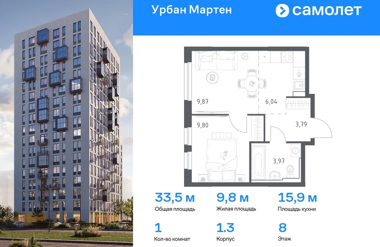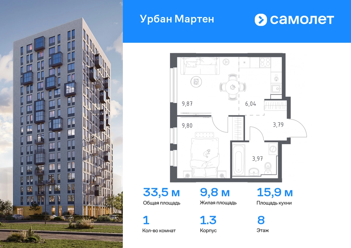Предлагается 1-комнатная квартира комфорт-класса 33,47 кв.м в корпусе 1.3 на 8 этаже, в ЖК «Урбан Мартен» Квартира с предчистовой отделкой. Доступность дополнительных опций уточняйте у застройщика. Приобрести квартиру возможно по специальным акциям от застройщика, с текущими условиями акций можно ознакомиться в блоке “Акций”. Цена динамическая и может отличаться, уточняйте актуальность у застройщика. В жилом комплексе «Урбан Мартен» у вас будет собственная Уфа: домашняя, неторопливая, теплая. Здесь дети будут играть во дворе без машин в догонялки, собака сможет бегать за палкой по пляжу, а с соседями получится встречаться не только у лифта, но и на утренних занятиях йогой на зеленой лужайке рядом с домом. Жилой комплекс «Урбан Мартен» находится в Демском районе — самом тихом и зеленом в Уфе. Здесь можно открывать окна нараспашку, чтобы квартира наполнялась свежим воздухом, и наблюдать с балкона, как покачиваются макушки деревьев. #yan19-2r1737201#О застройщике