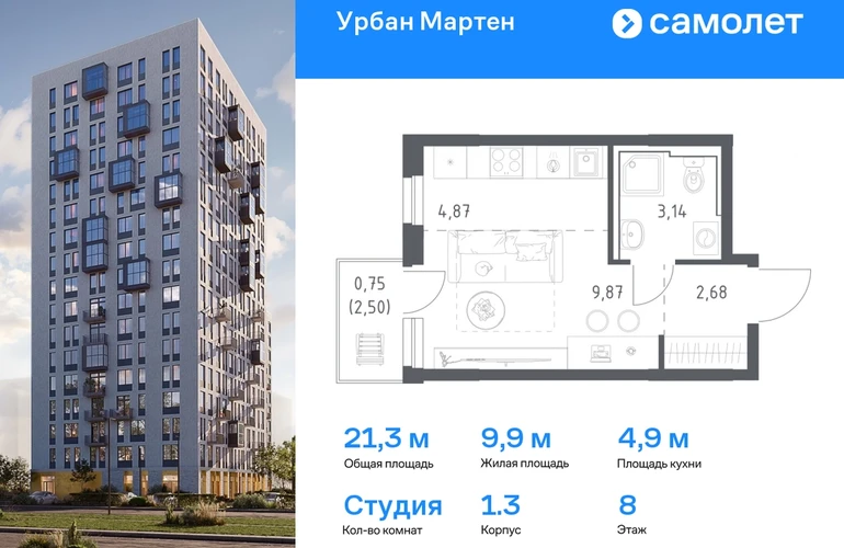 Предлагается квартира студия комфорт-класса 21,31 кв.м в корпусе 1.3 на 8 этаже, в ЖК «Урбан Мартен» Квартира с предчистовой отделкой. Доступность дополнительных опций уточняйте у застройщика. Приобрести квартиру возможно по специальным акциям от застройщика, с текущими условиями акций можно ознакомиться в блоке «Акций». Цена динамическая и может отличаться, уточняйте актуальность у застройщика. В жилом комплексе «Урбан Мартен» у вас будет собственная Уфа: домашняя, неторопливая, теплая. Здесь дети будут играть во дворе без машин в догонялки, собака сможет бегать за палкой по пляжу, а с соседями получится встречаться не только у лифта, но и на утренних занятиях йогой на зеленой лужайке рядом с домом. Жилой комплекс «Урбан Мартен» находится в Демском районе — самом тихом и зеленом в Уфе. Здесь можно открывать окна нараспашку, чтобы квартира наполнялась свежим воздухом, и наблюдать с балкона, как покачиваются макушки деревьев. #yan19-2r1737216#О застройщике