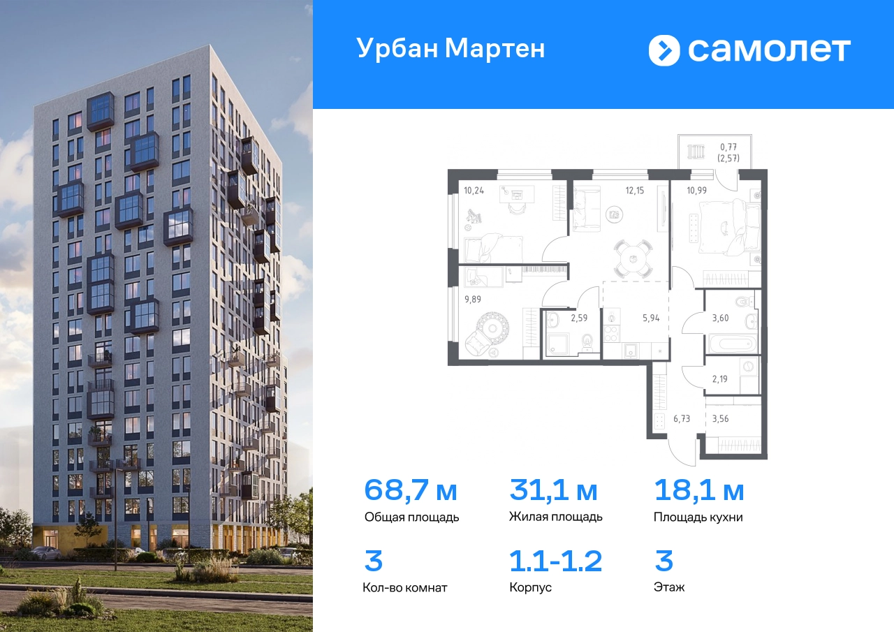 Строим кварталы для жизни с заботой о будущем. Предлагается 3-комнатная квартира комфорт-класса 69,79 кв.м в корпусе 1.1-1.2 на 3 этаже, в ЖК «Урбан Мартен» Квартира с чистовой отделкой. Доступность дополнительных опций уточняйте у застройщика. Приобрести квартиру возможно по специальным акциям от застройщика, с текущими условиями акций можно ознакомиться в блоке «Акций». Цена динамическая и может отличаться, уточняйте актуальность у застройщика. В жилом комплексе «Урбан Мартен» у вас будет собственная Уфа: домашняя, неторопливая, теплая. Здесь дети будут играть во дворе без машин в догонялки, собака сможет бегать за палкой по пляжу, а с соседями получится встречаться не только у лифта, но и на утренних занятиях йогой на зеленой лужайке рядом с домом. Жилой комплекс «Урбан Мартен» находится в Демском районе — самом тихом и зеленом в Уфе. Здесь можно открывать окна нараспашку, чтобы квартира наполнялась свежим воздухом, и наблюдать с балкона, как покачиваются макушки деревьев. #yan19-2r1746729#О застройщике