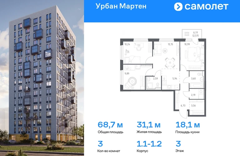 Строим кварталы для жизни с заботой о будущем. Предлагается 3-комнатная квартира комфорт-класса 69,79 кв.м в корпусе 1.1-1.2 на 3 этаже, в ЖК «Урбан Мартен» Квартира с чистовой отделкой. Доступность дополнительных опций уточняйте у застройщика. Приобрести квартиру возможно по специальным акциям от застройщика, с текущими условиями акций можно ознакомиться в блоке «Акций». Цена динамическая и может отличаться, уточняйте актуальность у застройщика. В жилом комплексе «Урбан Мартен» у вас будет собственная Уфа: домашняя, неторопливая, теплая. Здесь дети будут играть во дворе без машин в догонялки, собака сможет бегать за палкой по пляжу, а с соседями получится встречаться не только у лифта, но и на утренних занятиях йогой на зеленой лужайке рядом с домом. Жилой комплекс «Урбан Мартен» находится в Демском районе — самом тихом и зеленом в Уфе. Здесь можно открывать окна нараспашку, чтобы квартира наполнялась свежим воздухом, и наблюдать с балкона, как покачиваются макушки деревьев. #yan19-2r1746729#О застройщике