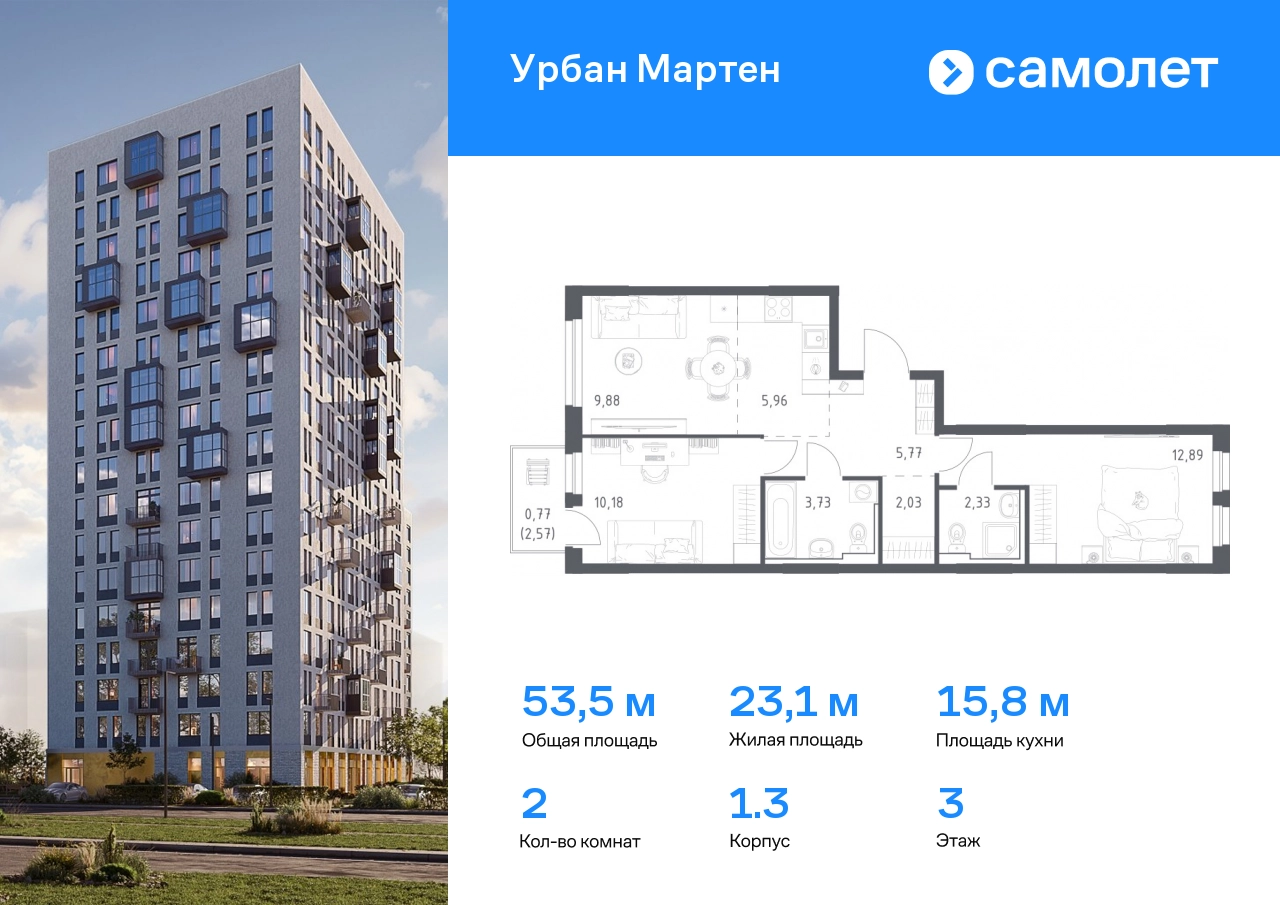 Предлагается 2-комнатная квартира комфорт-класса 53,54 кв.м в корпусе 1.3 на 3 этаже, в ЖК «Урбан Мартен» Квартира без отделки. Доступность опции "отделка" и возможность комплектации мебелью и декором уточняйте у застройщика. Приобрести квартиру возможно по специальным акциям от застройщика, с текущими условиями акций можно ознакомиться в блоке “Акций”. Цена динамическая и может отличаться, уточняйте актуальность у застройщика. В жилом комплексе «Урбан Мартен» у вас будет собственная Уфа: домашняя, неторопливая, теплая. Здесь дети будут играть во дворе без машин в догонялки, собака сможет бегать за палкой по пляжу, а с соседями получится встречаться не только у лифта, но и на утренних занятиях йогой на зеленой лужайке рядом с домом. Жилой комплекс «Урбан Мартен» находится в Демском районе — самом тихом и зеленом в Уфе. Здесь можно открывать окна нараспашку, чтобы квартира наполнялась свежим воздухом, и наблюдать с балкона, как покачиваются макушки деревьев. #yan19-2r1747841#О застройщике