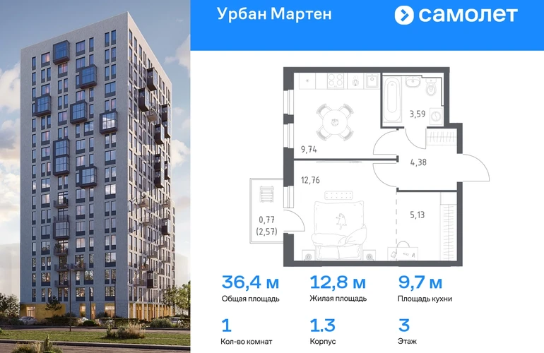 Предлагается 1-комнатная квартира комфорт-класса 36,37 кв.м в корпусе 1.3 на 3 этаже, в ЖК «Урбан Мартен» Квартира без отделки. Доступность опции "отделка" и возможность комплектации мебелью и декором уточняйте у застройщика. Приобрести квартиру возможно по специальным акциям от застройщика, с текущими условиями акций можно ознакомиться в блоке “Акций”. Цена динамическая и может отличаться, уточняйте актуальность у застройщика. В жилом комплексе «Урбан Мартен» у вас будет собственная Уфа: домашняя, неторопливая, теплая. Здесь дети будут играть во дворе без машин в догонялки, собака сможет бегать за палкой по пляжу, а с соседями получится встречаться не только у лифта, но и на утренних занятиях йогой на зеленой лужайке рядом с домом. Жилой комплекс «Урбан Мартен» находится в Демском районе — самом тихом и зеленом в Уфе. Здесь можно открывать окна нараспашку, чтобы квартира наполнялась свежим воздухом, и наблюдать с балкона, как покачиваются макушки деревьев. #yan19-2r1747849#О застройщике