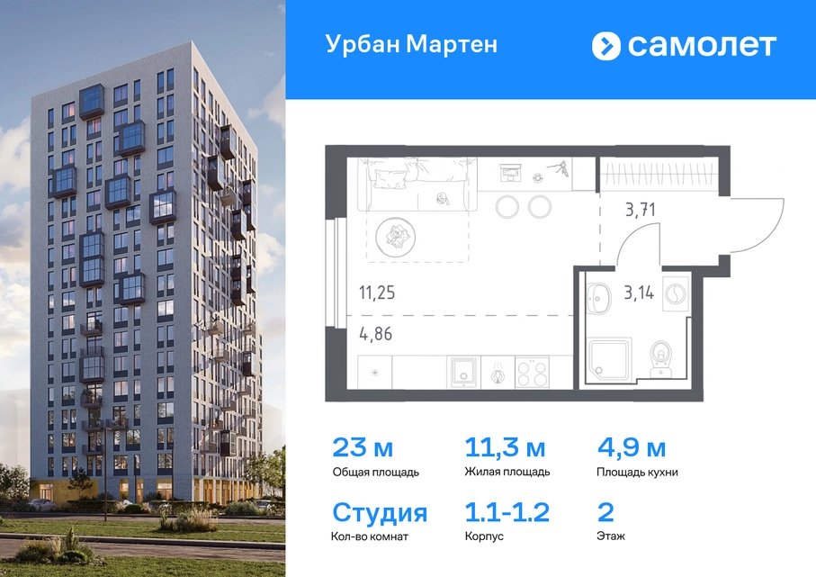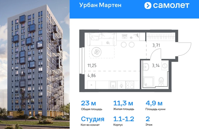 Строим кварталы для жизни с заботой о будущем. Предлагается квартира студия комфорт-класса 23,07 кв.м в корпусе 1.1-1.2 на 2 этаже, в ЖК «Урбан Мартен» Квартира с чистовой отделкой. Доступность дополнительных опций уточняйте у застройщика. Приобрести квартиру возможно по специальным акциям от застройщика, с текущими условиями акций можно ознакомиться в блоке «Акций». Цена динамическая и может отличаться, уточняйте актуальность у застройщика. В жилом комплексе «Урбан Мартен» у вас будет собственная Уфа: домашняя, неторопливая, теплая. Здесь дети будут играть во дворе без машин в догонялки, собака сможет бегать за палкой по пляжу, а с соседями получится встречаться не только у лифта, но и на утренних занятиях йогой на зеленой лужайке рядом с домом. Жилой комплекс «Урбан Мартен» находится в Демском районе — самом тихом и зеленом в Уфе. Здесь можно открывать окна нараспашку, чтобы квартира наполнялась свежим воздухом, и наблюдать с балкона, как покачиваются макушки деревьев. #yan19-2r1758293#О застройщике