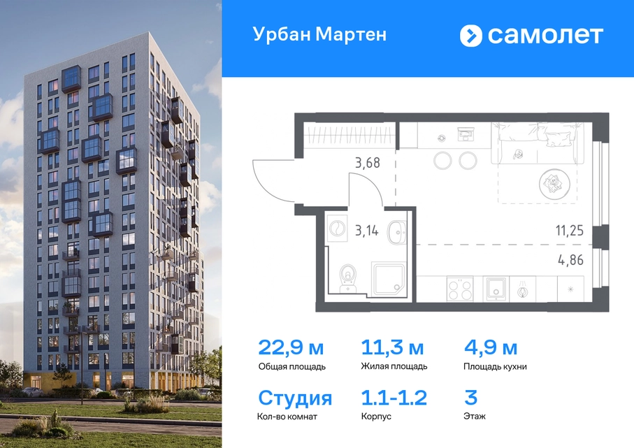 Строим кварталы для жизни с заботой о будущем. Предлагается квартира студия комфорт-класса 23,07 кв.м в корпусе 1.1-1.2 на 3 этаже, в ЖК «Урбан Мартен» Квартира с предчистовой отделкой. Доступность дополнительных опций уточняйте у застройщика. Приобрести квартиру возможно по специальным акциям от застройщика, с текущими условиями акций можно ознакомиться в блоке «Акций». Цена динамическая и может отличаться, уточняйте актуальность у застройщика. В жилом комплексе «Урбан Мартен» у вас будет собственная Уфа: домашняя, неторопливая, теплая. Здесь дети будут играть во дворе без машин в догонялки, собака сможет бегать за палкой по пляжу, а с соседями получится встречаться не только у лифта, но и на утренних занятиях йогой на зеленой лужайке рядом с домом. Жилой комплекс «Урбан Мартен» находится в Демском районе — самом тихом и зеленом в Уфе. Здесь можно открывать окна нараспашку, чтобы квартира наполнялась свежим воздухом, и наблюдать с балкона, как покачиваются макушки деревьев. #yan19-2r1758331#О застройщике