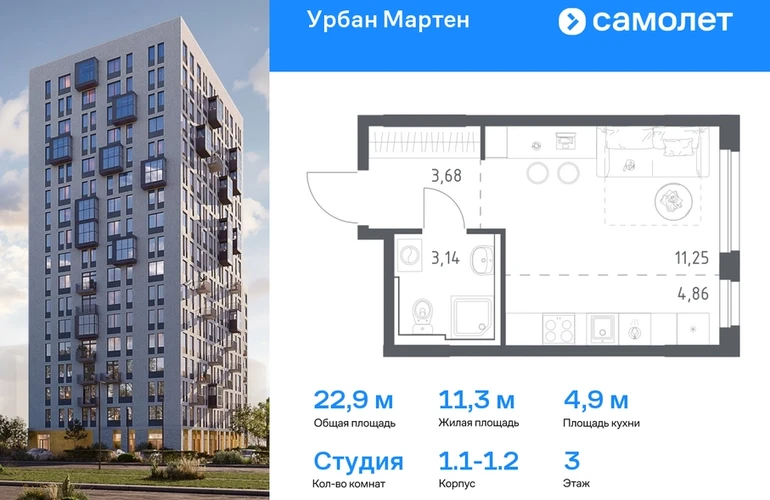 Строим кварталы для жизни с заботой о будущем. Предлагается квартира студия комфорт-класса 23,07 кв.м в корпусе 1.1-1.2 на 3 этаже, в ЖК «Урбан Мартен» Квартира с предчистовой отделкой. Доступность дополнительных опций уточняйте у застройщика. Приобрести квартиру возможно по специальным акциям от застройщика, с текущими условиями акций можно ознакомиться в блоке «Акций». Цена динамическая и может отличаться, уточняйте актуальность у застройщика. В жилом комплексе «Урбан Мартен» у вас будет собственная Уфа: домашняя, неторопливая, теплая. Здесь дети будут играть во дворе без машин в догонялки, собака сможет бегать за палкой по пляжу, а с соседями получится встречаться не только у лифта, но и на утренних занятиях йогой на зеленой лужайке рядом с домом. Жилой комплекс «Урбан Мартен» находится в Демском районе — самом тихом и зеленом в Уфе. Здесь можно открывать окна нараспашку, чтобы квартира наполнялась свежим воздухом, и наблюдать с балкона, как покачиваются макушки деревьев. #yan19-2r1758331#О застройщике