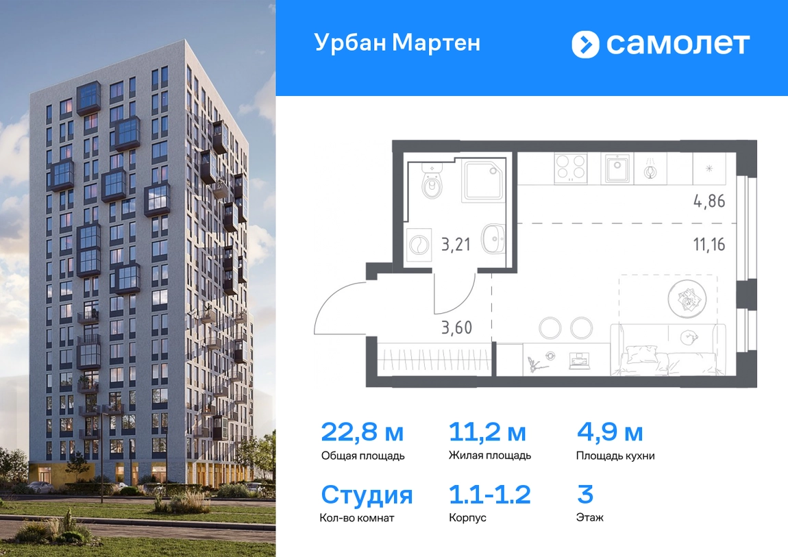Строим кварталы для жизни с заботой о будущем. Предлагается квартира студия комфорт-класса 23,05 кв.м в корпусе 1.1-1.2 на 3 этаже, в ЖК «Урбан Мартен» Квартира с предчистовой отделкой. Доступность дополнительных опций уточняйте у застройщика. Приобрести квартиру возможно по специальным акциям от застройщика, с текущими условиями акций можно ознакомиться в блоке «Акций». Цена динамическая и может отличаться, уточняйте актуальность у застройщика. В жилом комплексе «Урбан Мартен» у вас будет собственная Уфа: домашняя, неторопливая, теплая. Здесь дети будут играть во дворе без машин в догонялки, собака сможет бегать за палкой по пляжу, а с соседями получится встречаться не только у лифта, но и на утренних занятиях йогой на зеленой лужайке рядом с домом. Жилой комплекс «Урбан Мартен» находится в Демском районе — самом тихом и зеленом в Уфе. Здесь можно открывать окна нараспашку, чтобы квартира наполнялась свежим воздухом, и наблюдать с балкона, как покачиваются макушки деревьев. #yan19-2r1758335#О застройщике