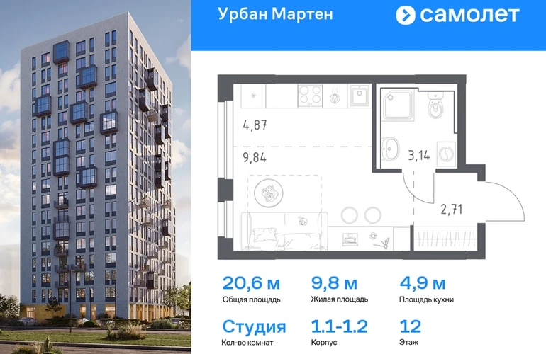 Предлагается квартира студия комфорт-класса 20,56 кв.м в корпусе 1.1-1.2 на 12 этаже, в ЖК «Урбан Мартен» Квартира с предчистовой отделкой. Доступность дополнительных опций уточняйте у застройщика. Приобрести квартиру возможно по специальным акциям от застройщика, с текущими условиями акций можно ознакомиться в блоке “Акций”. Цена динамическая и может отличаться, уточняйте актуальность у застройщика. В жилом комплексе «Урбан Мартен» у вас будет собственная Уфа: домашняя, неторопливая, теплая. Здесь дети будут играть во дворе без машин в догонялки, собака сможет бегать за палкой по пляжу, а с соседями получится встречаться не только у лифта, но и на утренних занятиях йогой на зеленой лужайке рядом с домом. Жилой комплекс «Урбан Мартен» находится в Демском районе — самом тихом и зеленом в Уфе. Здесь можно открывать окна нараспашку, чтобы квартира наполнялась свежим воздухом, и наблюдать с балкона, как покачиваются макушки деревьев. #yan19-2r1758350#О застройщике