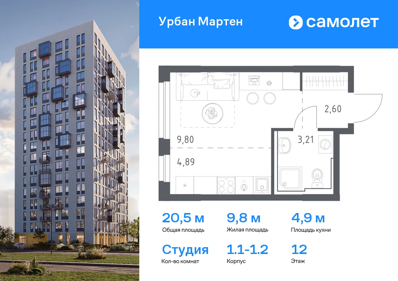Предлагается квартира студия комфорт-класса 20,5 кв.м в корпусе 1.1-1.2 на 12 этаже, в ЖК «Урбан Мартен» Квартира с предчистовой отделкой. Доступность дополнительных опций уточняйте у застройщика. Приобрести квартиру возможно по специальным акциям от застройщика, с текущими условиями акций можно ознакомиться в блоке «Акций». Цена динамическая и может отличаться, уточняйте актуальность у застройщика. В жилом комплексе «Урбан Мартен» у вас будет собственная Уфа: домашняя, неторопливая, теплая. Здесь дети будут играть во дворе без машин в догонялки, собака сможет бегать за палкой по пляжу, а с соседями получится встречаться не только у лифта, но и на утренних занятиях йогой на зеленой лужайке рядом с домом. Жилой комплекс «Урбан Мартен» находится в Демском районе — самом тихом и зеленом в Уфе. Здесь можно открывать окна нараспашку, чтобы квартира наполнялась свежим воздухом, и наблюдать с балкона, как покачиваются макушки деревьев. #yan19-2r1758358#О застройщике