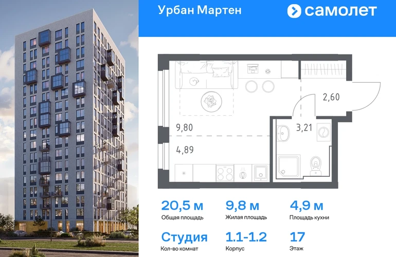 Строим кварталы для жизни с заботой о будущем. Предлагается квартира студия комфорт-класса 20,67 кв.м в корпусе 1.1-1.2 на 17 этаже, в ЖК «Урбан Мартен» Квартира с предчистовой отделкой. Доступность дополнительных опций уточняйте у застройщика. Приобрести квартиру возможно по специальным акциям от застройщика, с текущими условиями акций можно ознакомиться в блоке «Акций». Цена динамическая и может отличаться, уточняйте актуальность у застройщика. В жилом комплексе «Урбан Мартен» у вас будет собственная Уфа: домашняя, неторопливая, теплая. Здесь дети будут играть во дворе без машин в догонялки, собака сможет бегать за палкой по пляжу, а с соседями получится встречаться не только у лифта, но и на утренних занятиях йогой на зеленой лужайке рядом с домом. Жилой комплекс «Урбан Мартен» находится в Демском районе — самом тихом и зеленом в Уфе. Здесь можно открывать окна нараспашку, чтобы квартира наполнялась свежим воздухом, и наблюдать с балкона, как покачиваются макушки деревьев. #yan19-2r1758363#О застройщике