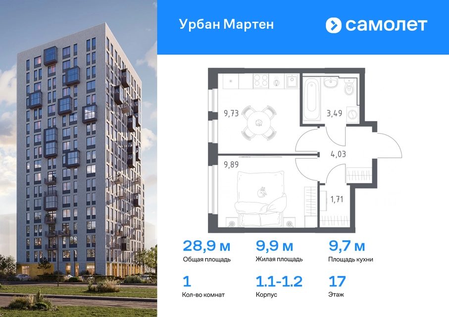 Предлагается 1-комнатная квартира комфорт-класса 28,85 кв.м в корпусе 1.1-1.2 на 17 этаже, в ЖК «Урбан Мартен» Квартира с предчистовой отделкой. Доступность дополнительных опций уточняйте у застройщика. Приобрести квартиру возможно по специальным акциям от застройщика, с текущими условиями акций можно ознакомиться в блоке “Акций”. Цена динамическая и может отличаться, уточняйте актуальность у застройщика. В жилом комплексе «Урбан Мартен» у вас будет собственная Уфа: домашняя, неторопливая, теплая. Здесь дети будут играть во дворе без машин в догонялки, собака сможет бегать за палкой по пляжу, а с соседями получится встречаться не только у лифта, но и на утренних занятиях йогой на зеленой лужайке рядом с домом. Жилой комплекс «Урбан Мартен» находится в Демском районе — самом тихом и зеленом в Уфе. Здесь можно открывать окна нараспашку, чтобы квартира наполнялась свежим воздухом, и наблюдать с балкона, как покачиваются макушки деревьев. #yan19-2r1758367#О застройщике